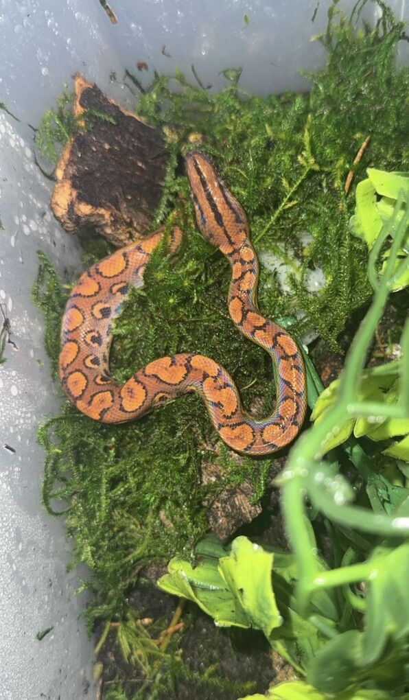 ApplePay6 month old Brazilian rainbow boa for sale. Unsure of sex. Eating weekly frozen fuzzy mice. This baby can be a picky eater as this BRB is VERY timid, I do night feedings and sometimes will leave the mouse overnight if this baby is too shy to eat in front of me. Last feeding was 02/10/26. Last shed 02/02/26.
