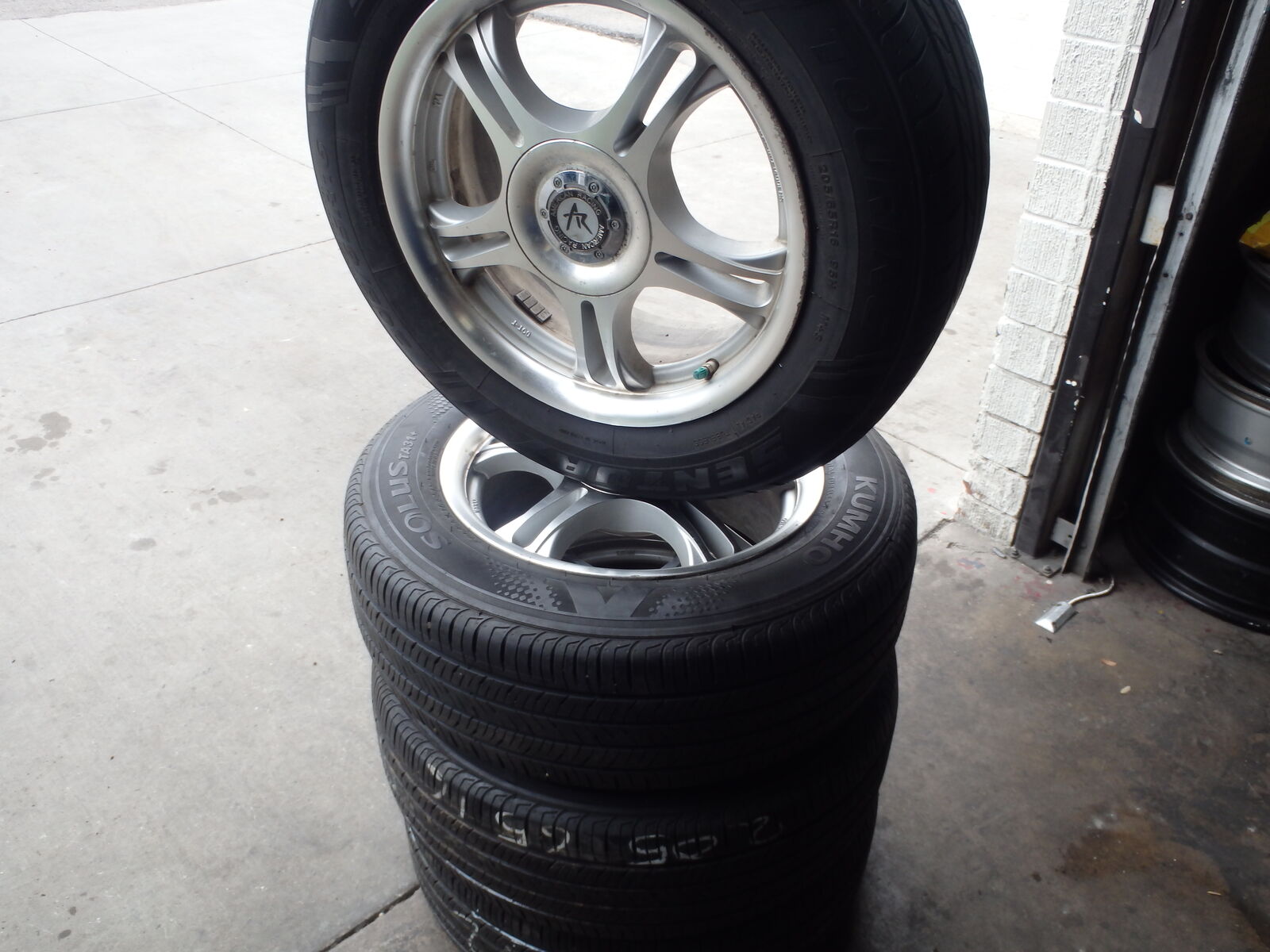 SET OF USED AMERICAN RACING WHEELS 16X7 , 5X108=5X4.5 AND USED TIRES 205/65R16 KUMHO SOLUS THESE SET OF WHEELS ARE IN GOOD CONDITION. FOR ONLY $380. IF WE NEED TO TRANSFER TPMS SENSORS FROM OTHER WHEELS ONTO THESE, WE WILL DO IT FREE OF CHARGE CALL FOR ANY QUESTIONS AT JOSE OR ROBERTO AT 801 878-4556 OR 801 410-4460 OR VISIT US AT J&J TIRES 7615 STATE STREET MIDVALE UTAH ,WE'RE OPEN MONDAY TO SATURDAY FROM 9:00 AM TO 6:00 PM, WE HAVE A LOT MORE AN USED TIRES AND BRAND NEW CALL US IF YOU ARE LOOKING FOR AN OTHER SIZE WE MAY HAVE'IT....