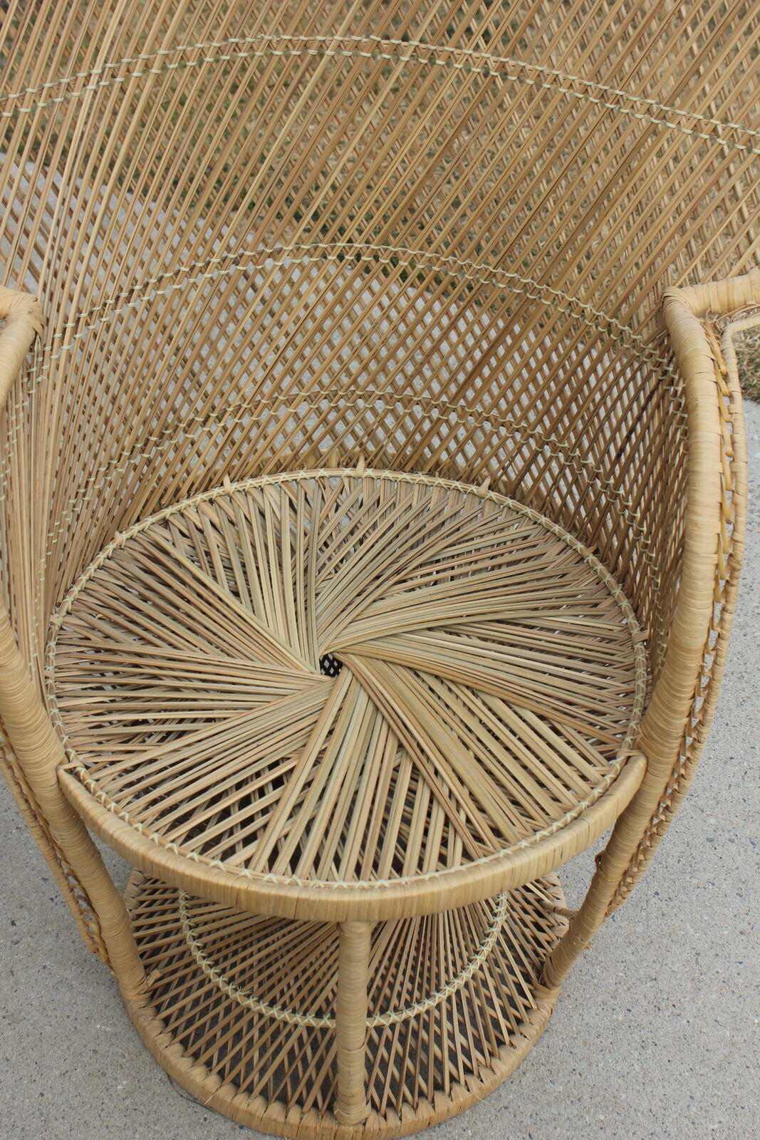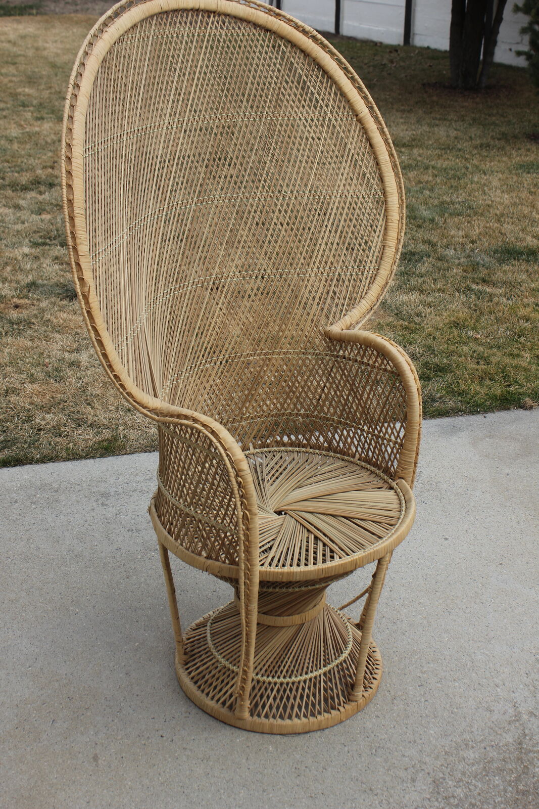 Vintage wicker fan back chair, 56 inch total height, 20 inch seat diameter, very good condition.