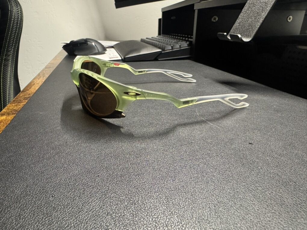 ApplePayFuturistic Oakley Plantaris sunglasses with nature inspired design, high performance materials and advanced Prizm lens technology. They are lightweight, tungsten lens with adjustable features. New glasses that’s come with the box, case and micro fiber bag!