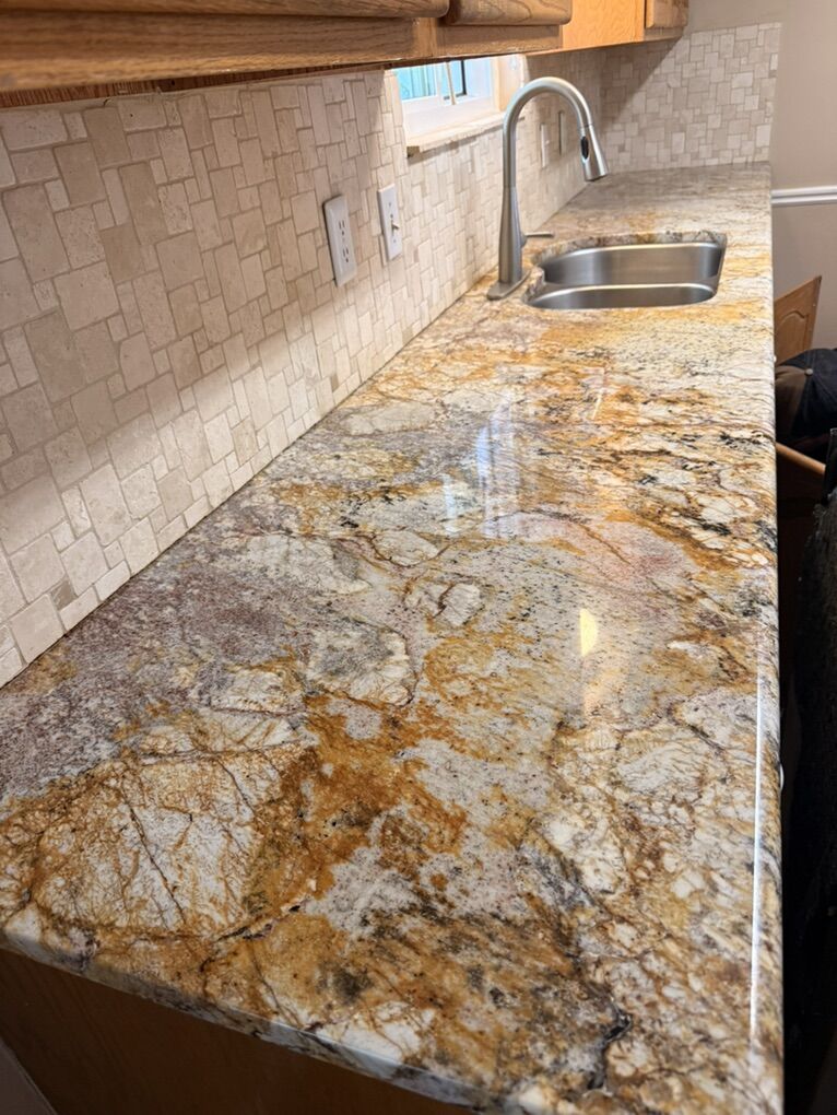 Venmo114” long, 25 “ deep. Faucet center is 71 1/2” from the right side (this is not the sink center - 51” to tight side of sink, 80” to right side)