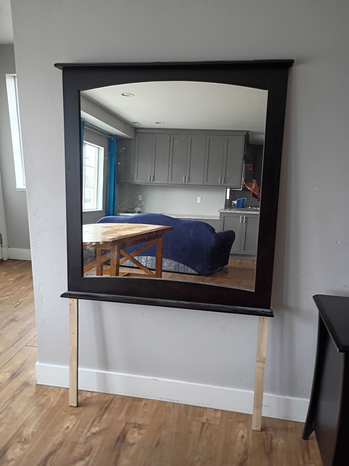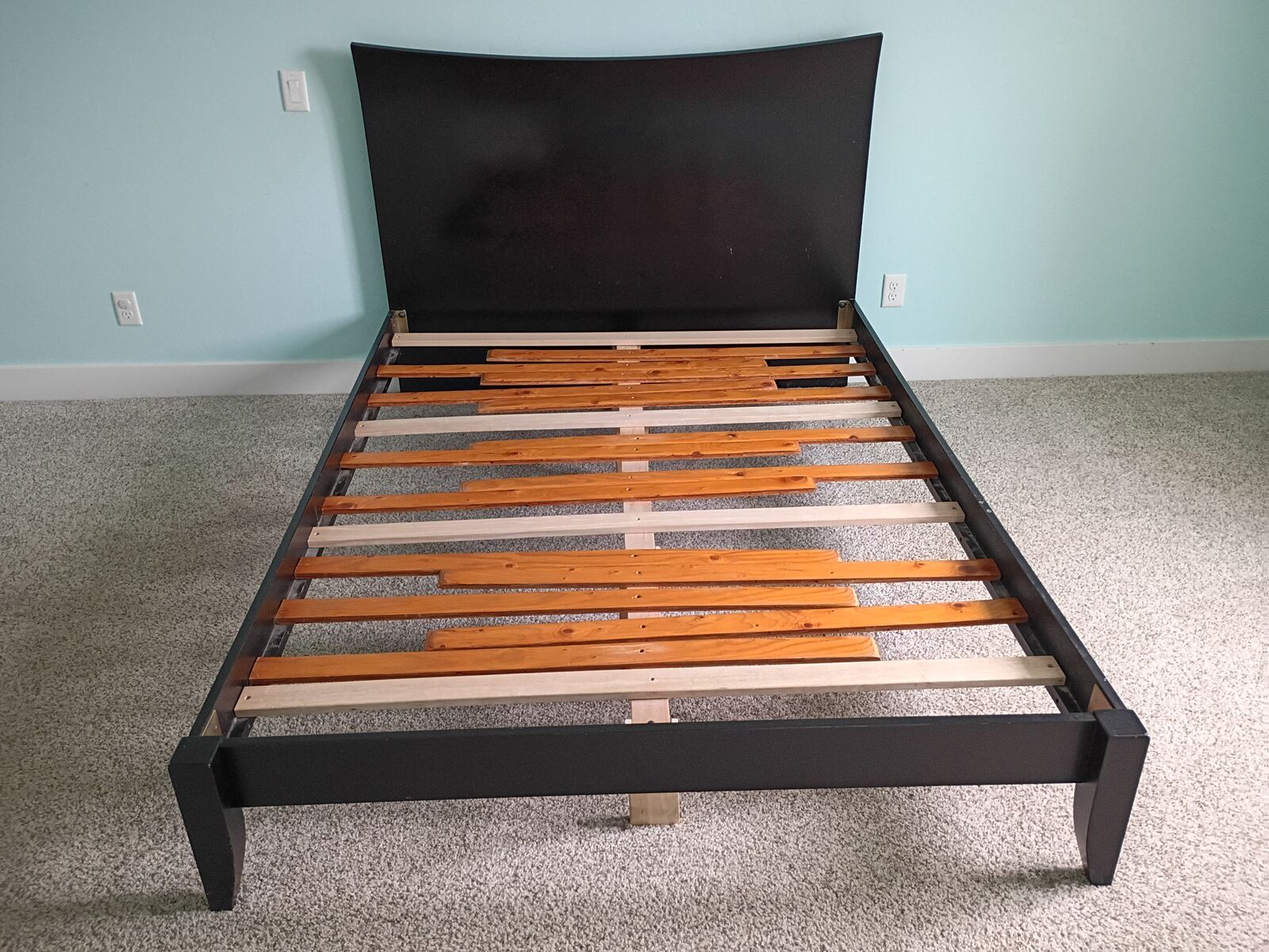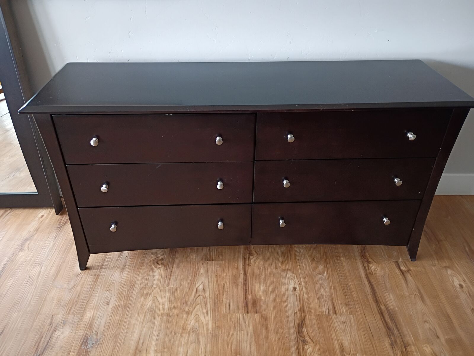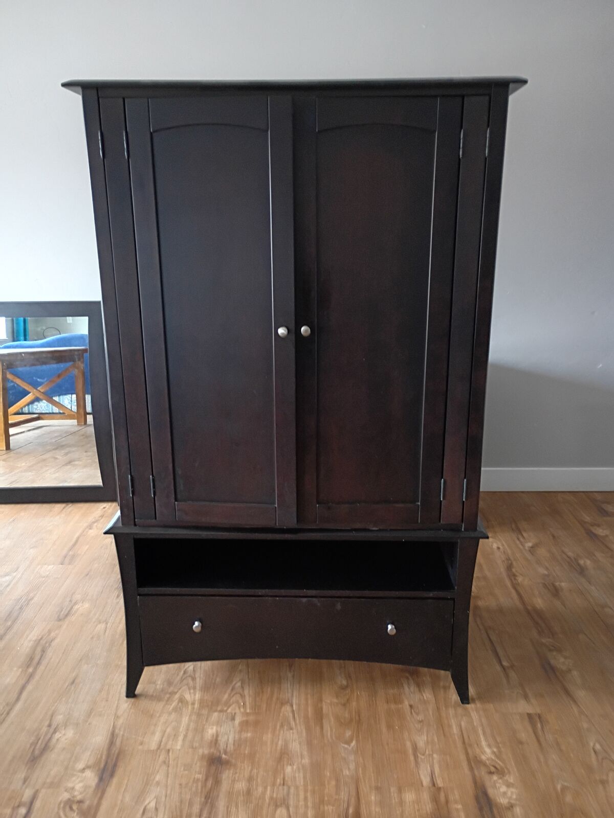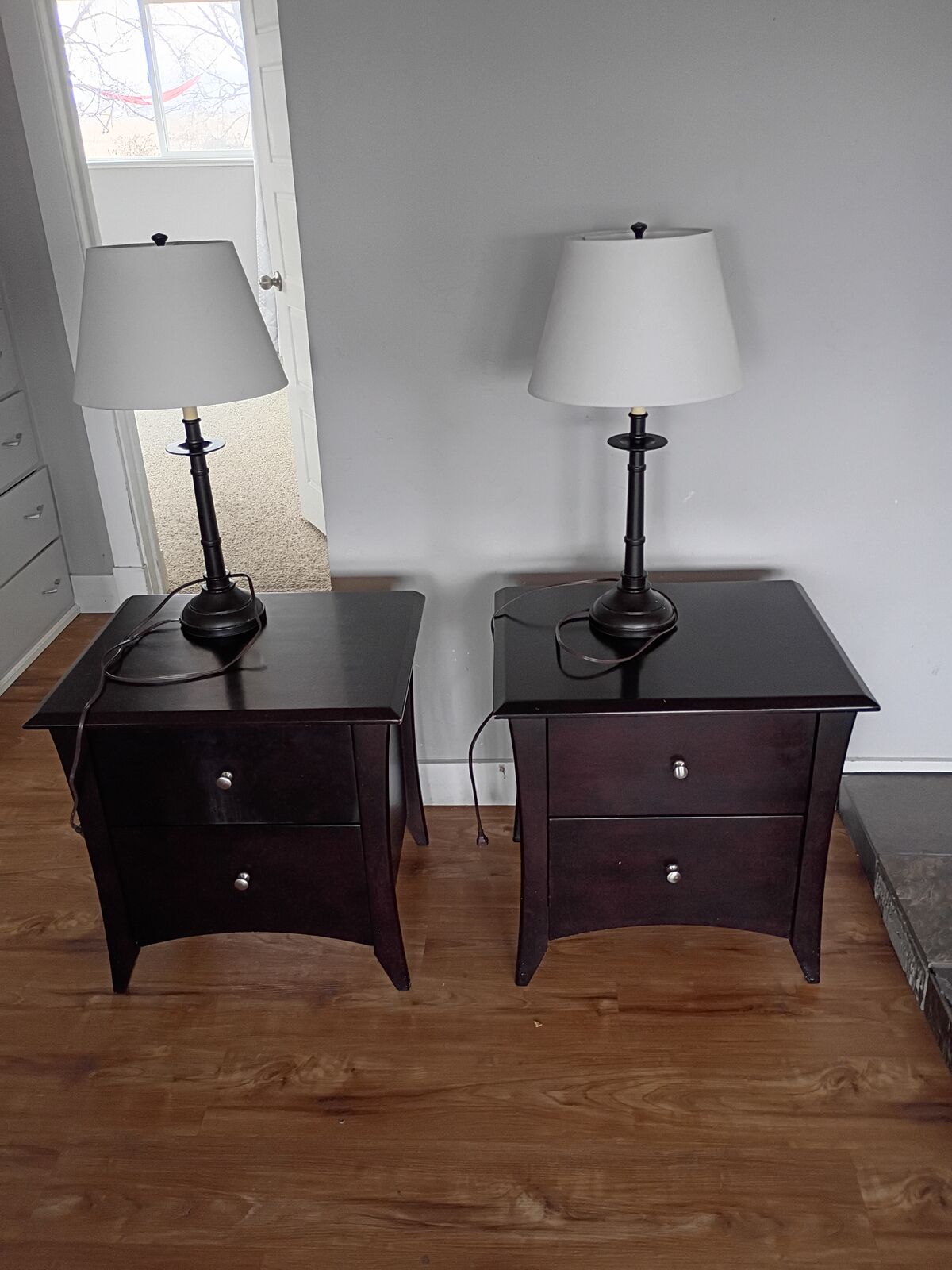 Venmoall solid wood bedroom set! 1 queen bedframe with headboard, 2 night stands, an armoire, and a dresser with a mirror. Everything is in quite good condition. Lamps included!