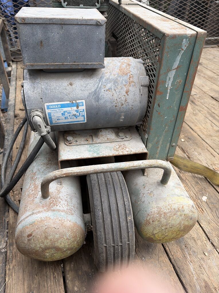 Older notch wheel barrow style air compressor Runs good easy to move, located in Layton text preferred (no hoses )