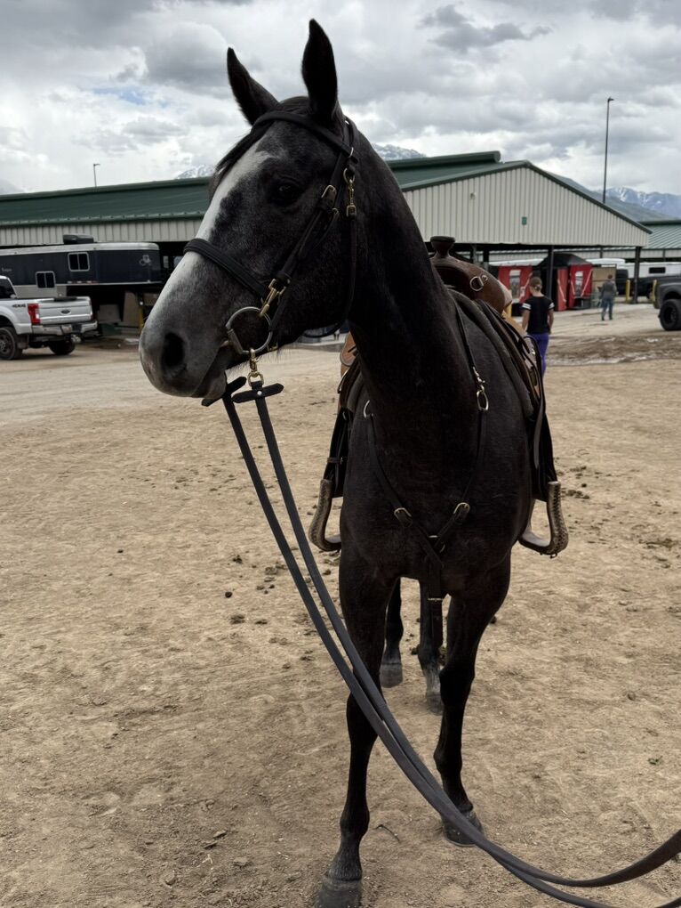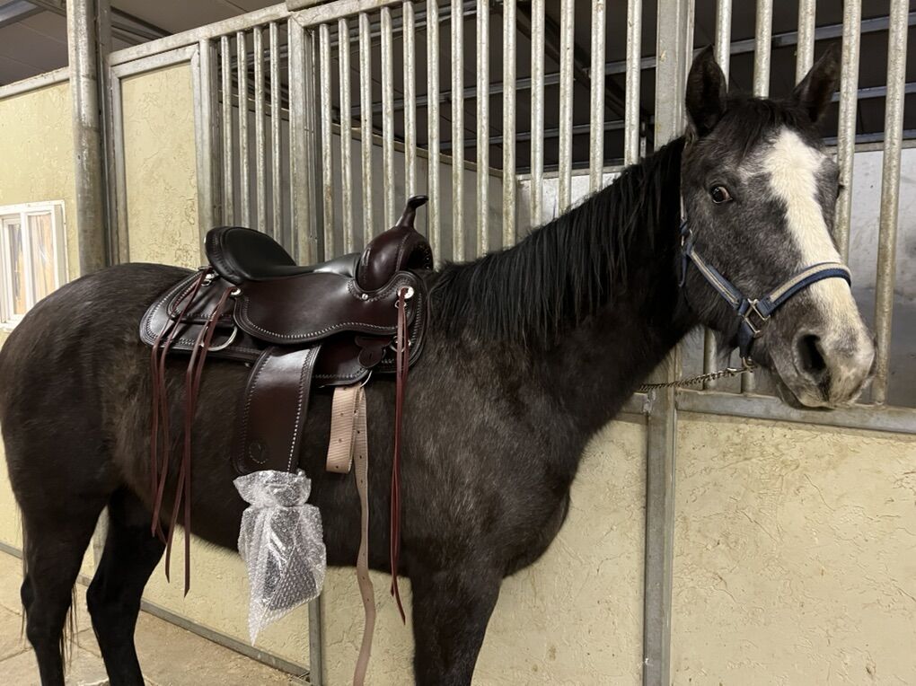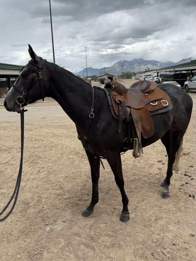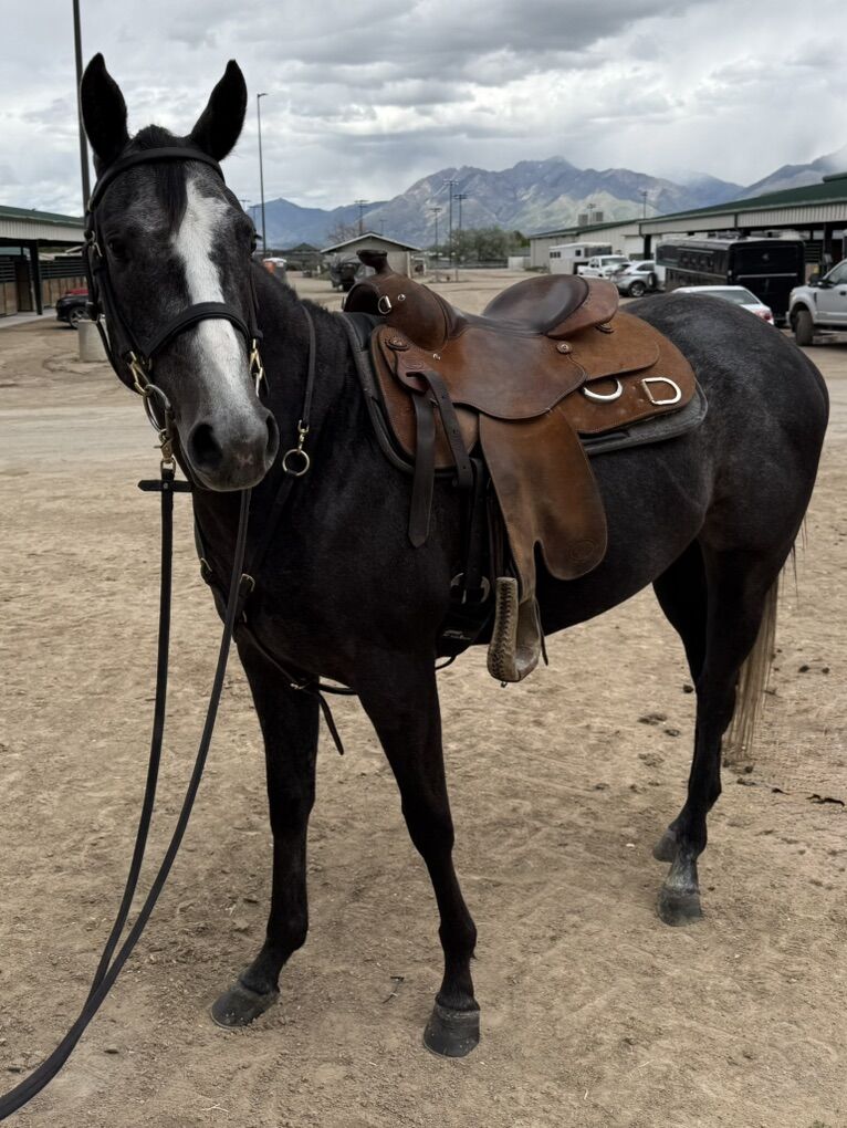 She just completed a 45 day tune up and has been consistently ridden for the last year and a half by us and our trainers. She’s done countless amount of trails, arena work, showing, exposed to all kinds of animals and kids. She’s not spooky, sure footed, easy to catch and eager to please. Shes 14.3- 15HH. She would make a phenomenal barrel or ranch horse. She’s truly ready to go in any direction. She’s been ridden by beginners and experienced riders. She can ride English and be collected, but mostly has been used western on a loose rein and has been working on neck reining. She does best with a confident beginner and beyond. She can be nippy, so it’s important to set boundaries with her.