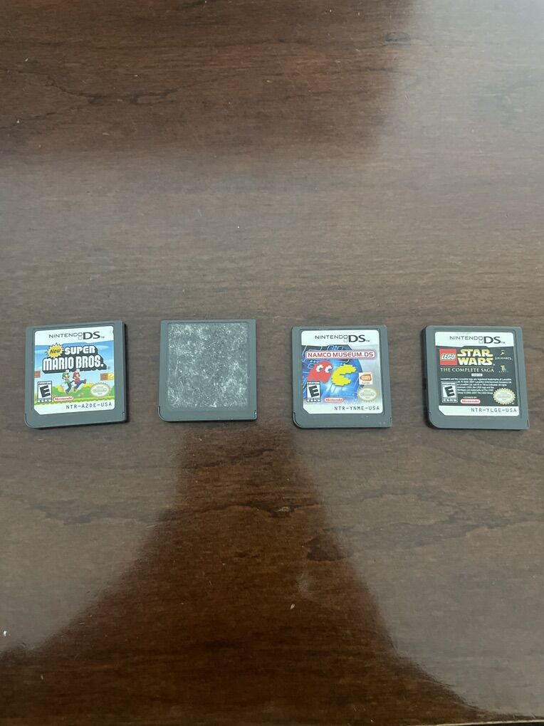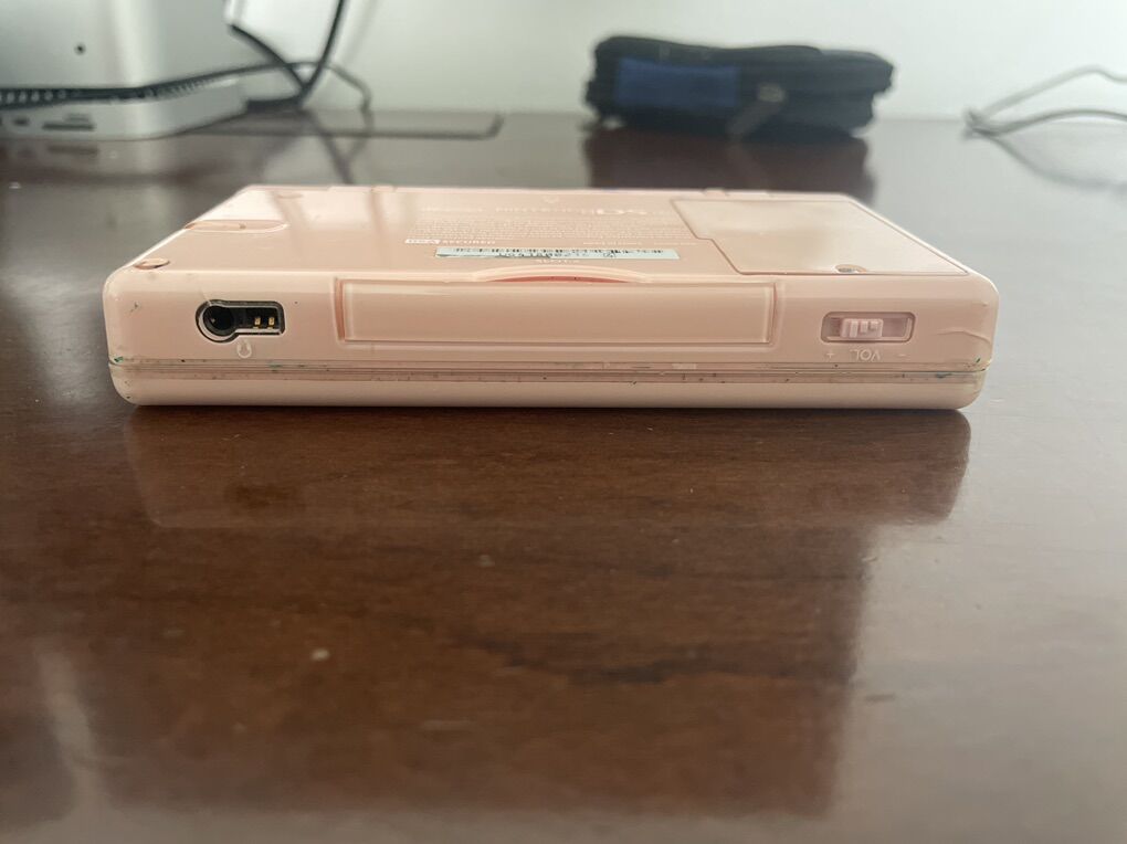 Pink Nintendo ds lite Great condition Minor crack on bottom casing (pictured) Slight paint residue along trim 4 games New super Mario bros, Lego Star Wars the complete saga, namco museum ds, Ben 10 alien force With charge and case