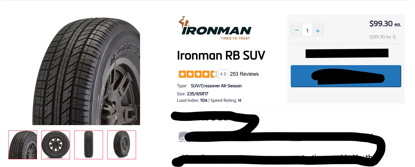VenmoBrand: Ironman Size: 235/65R17 Type: SUV / Crossover — All-Season