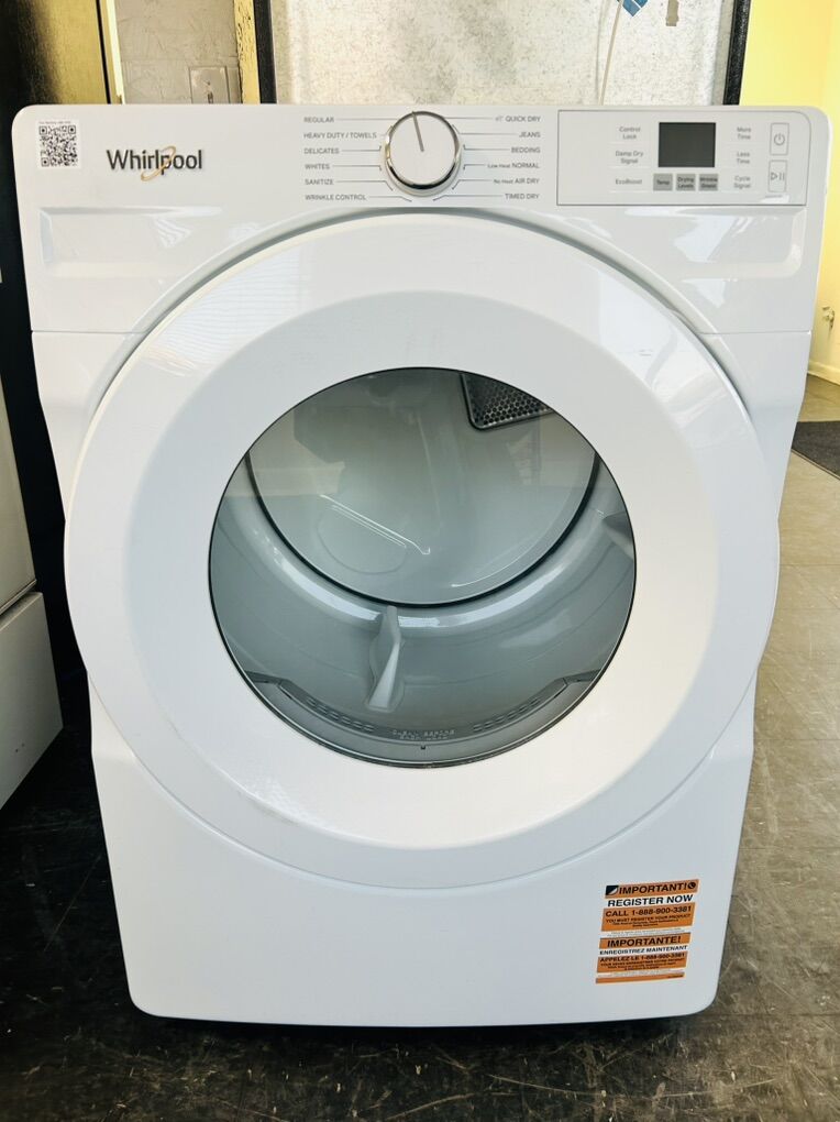 Whirlpool gas dryer super capacity heavy duty regular delicate sanitize wrinkle control quick dry jeans bedding normal air dry time dry damp dry signal eco boost wrinkle shield etc..Brand New/OpenBox. 45 day warranty, delivery/install available.
