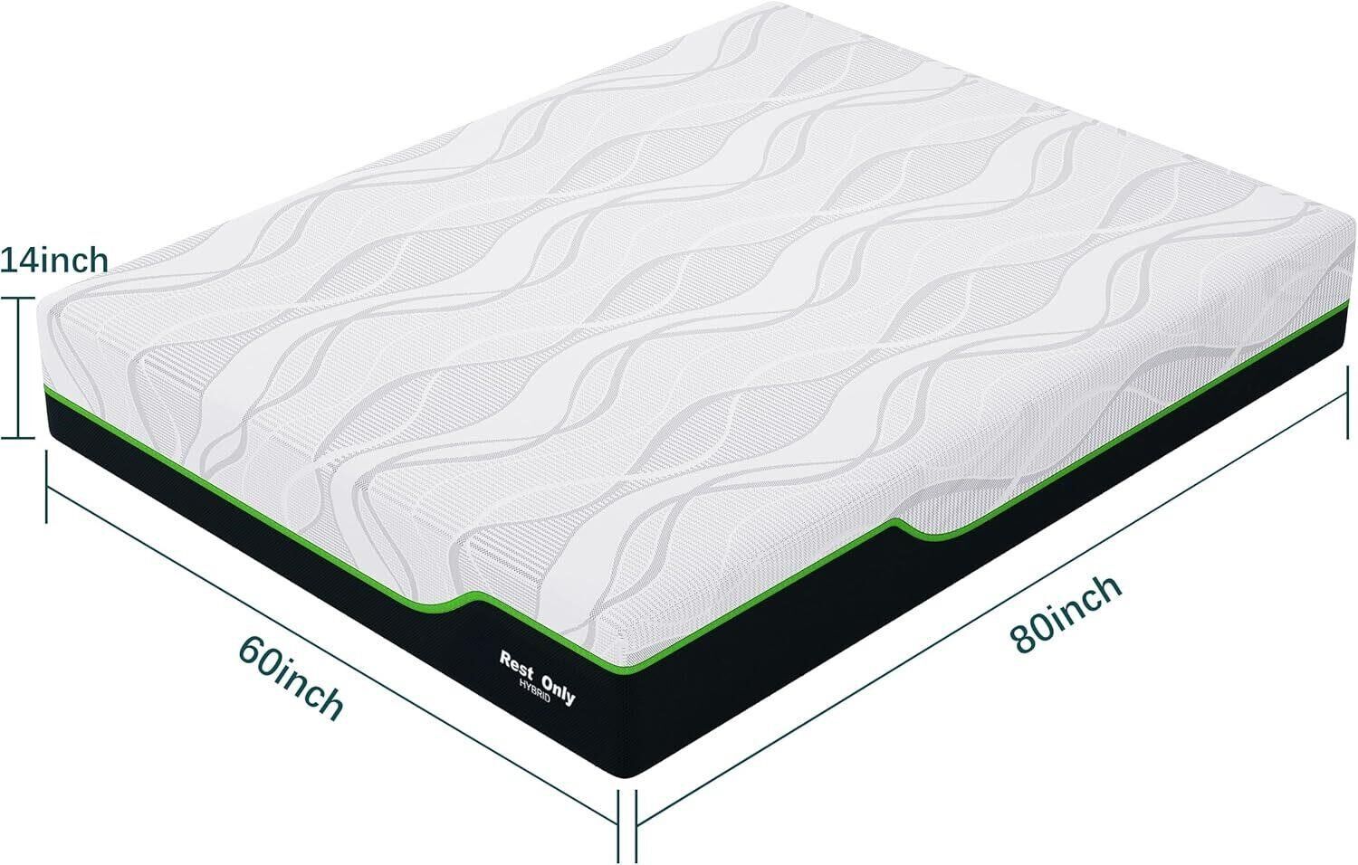 Safe & Comfortable REST ONLY twin xl mattress in a box is made of high-quality memory foam with medium firmness, which make you have a comfortable sleep. And the memory foam inside queen hybrid mattress is CertiPUR-US Certified for safety and durability, it is friendly for all people including pregnant and kids, you can sleep on our mattress with confidence. Relieves Pressure and Pain The comfortable memory foam layer of our twinXL mattress can fit the human body curve to support your body at every positions, which can effectively relieve the pressure point and it is fit for different sleep positions. And individual pocket spring has enough supporting force to support the joints of your body. The combination of the two allows you to wake up in a great morning without soreness or pain. Strong Support Our queen mattresses constructed by hundreds of individual pocket spring coils to provide enough support from head to toe for you, no need to worry about mattresses sagging. In the meantime, the twinXL bed mattress adds reinforced coils to enhance edge support, it can avoid the feeling of falling and provide you and your families with better protection. Motion Isolation Since each individual pocket innerspring coils of our bed mattress is work independently, it will reduce noise and isolate movement when you move. That is preventing effectively movement interference between partners, allowing you to enjoy a quiet and undisturbed sleep. Convenience & Compatibility This hybrid mattress is shipped by rolled to be compressed in a box, which is maneuvered into the bedroom easily. Simply unbox, unroll and wait for 72 hours to fully expand to sleep on.