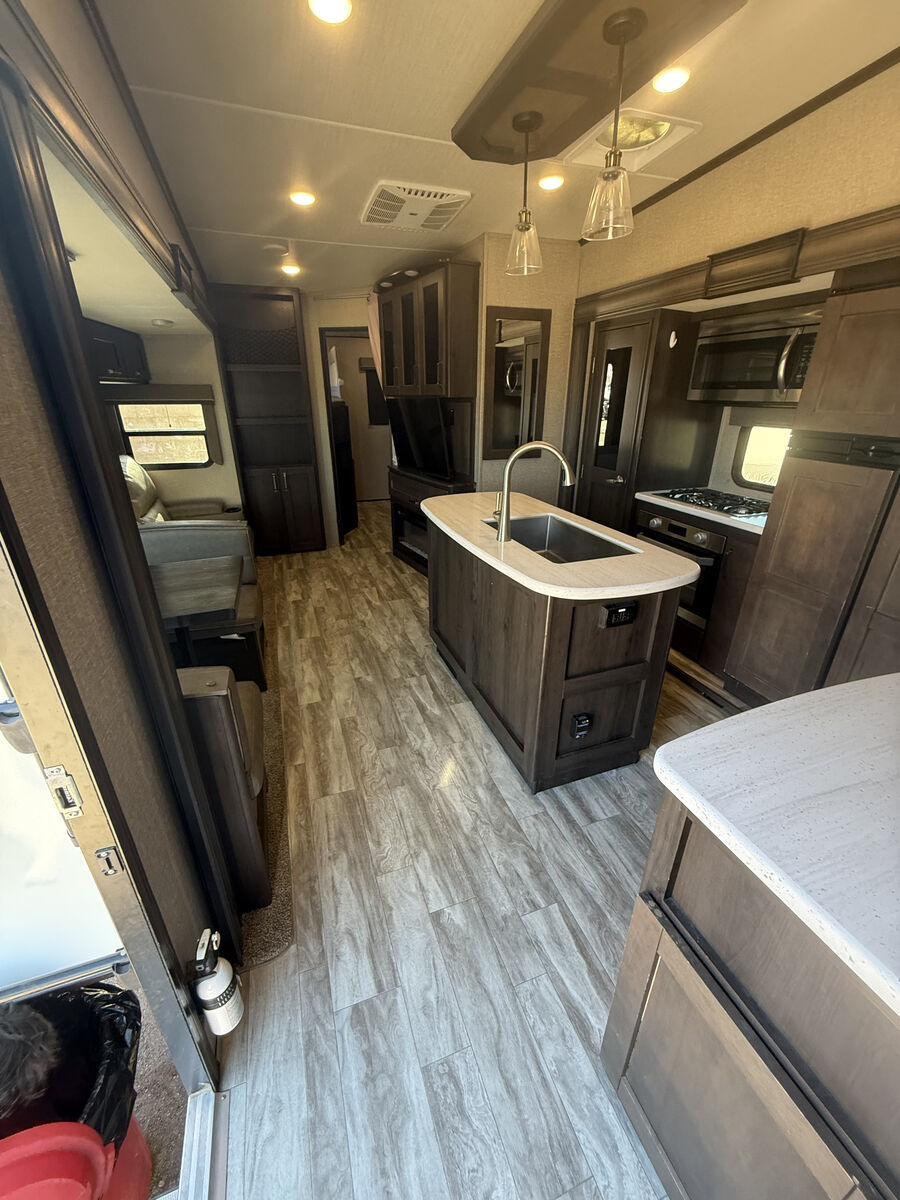2020 grand design reflection 311bhs 5th wheele camp trailer. Lots of space for a family. Bunkhouse in the back and master bedroom up front. 1/2 bath in the bunkhouse room and a full bath towards the front. We were living in this camper temporarily so everything is in working order. The fridge works on both electric and propane. Both air conditioners work great . The oven, stove top and outdoor kitchen are all in good working order as well. Propane tanks are almost full. It has solar panels and inverter prep wiring but none installed. The battery was installed about 6 months ago. It is 36 feet long, about 11,000 lbs dry weight.