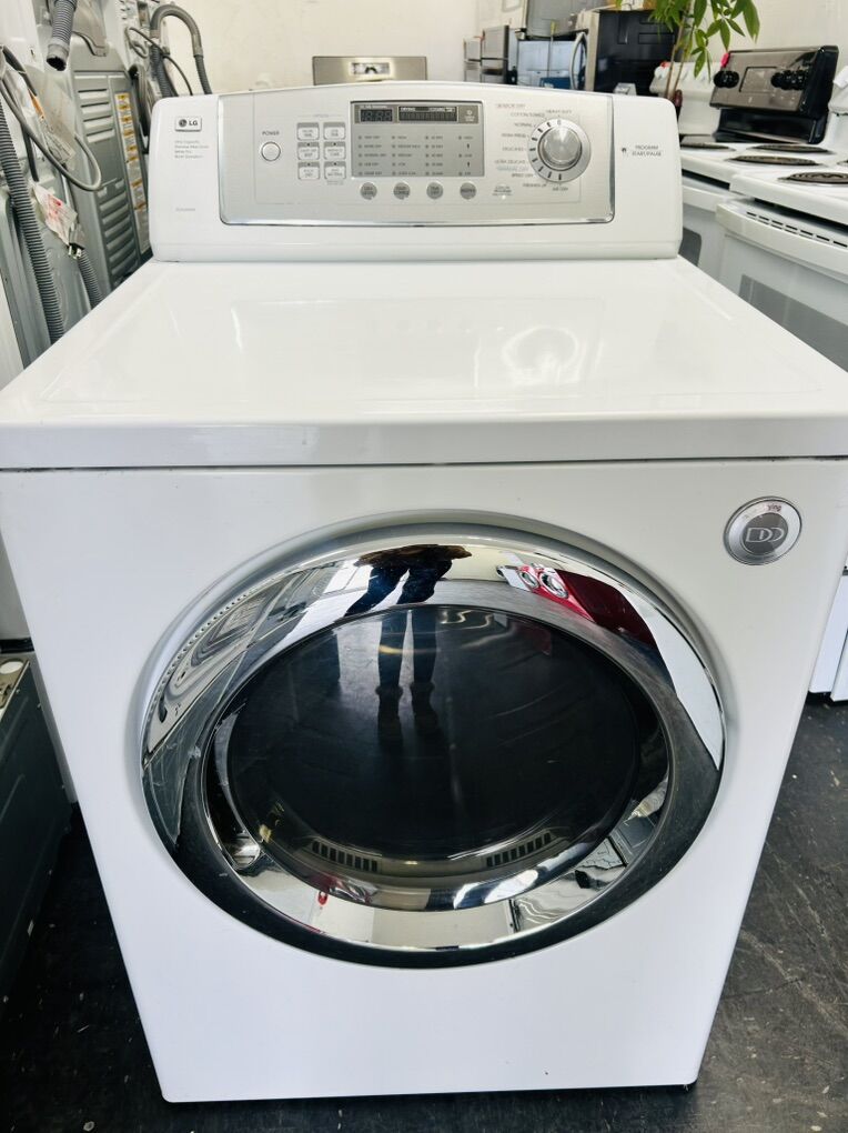 Lg Tromm dryer electric ultra capacity sense dry quiet operation stainless steel drum heavy duty cotton normal delicate speed dry freshen up air dry damp dry wrinkle care anti bacterial etc..They work great, clean, 45 day warranty, delivery/install available.