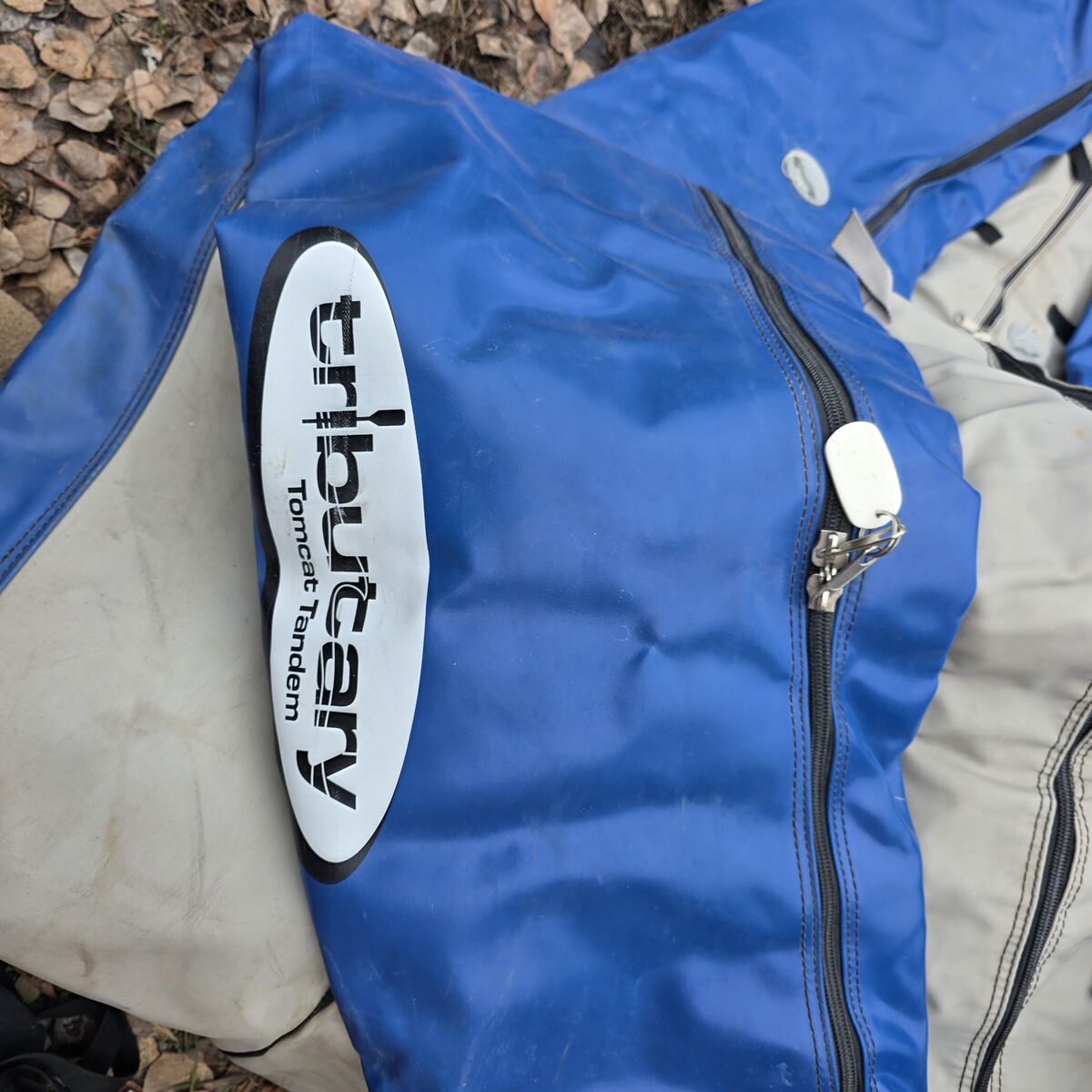Tributary Tomcat Tandem Inflatable Kayak with 2 seats. The Tributary Tomcat Tandem by AIRE is a durable, 12'6" (3.81 m) inflatable kayak designed for whitewater and recreational paddling, priced around $1,200. Featuring a 500 lb (227 kg) capacity, 3-chamber design, and self-bailing floor, it is suitable for two people or solo paddling with extra gear. Key features include 1000-denier PVC construction, adjustable thwart seats, and Summit II valves.