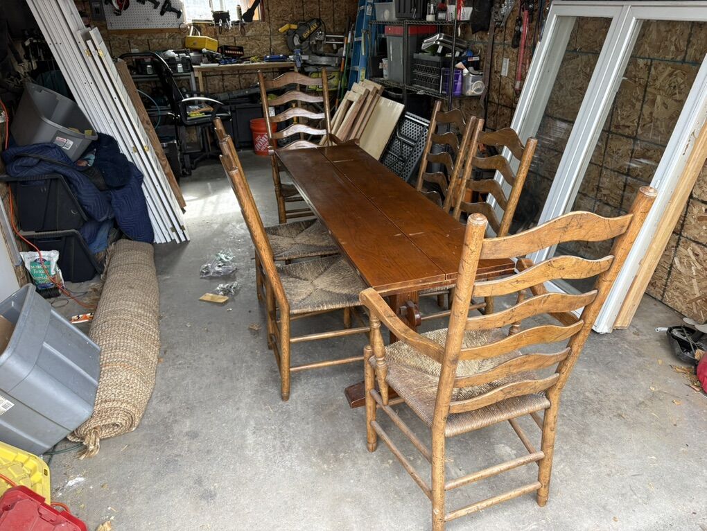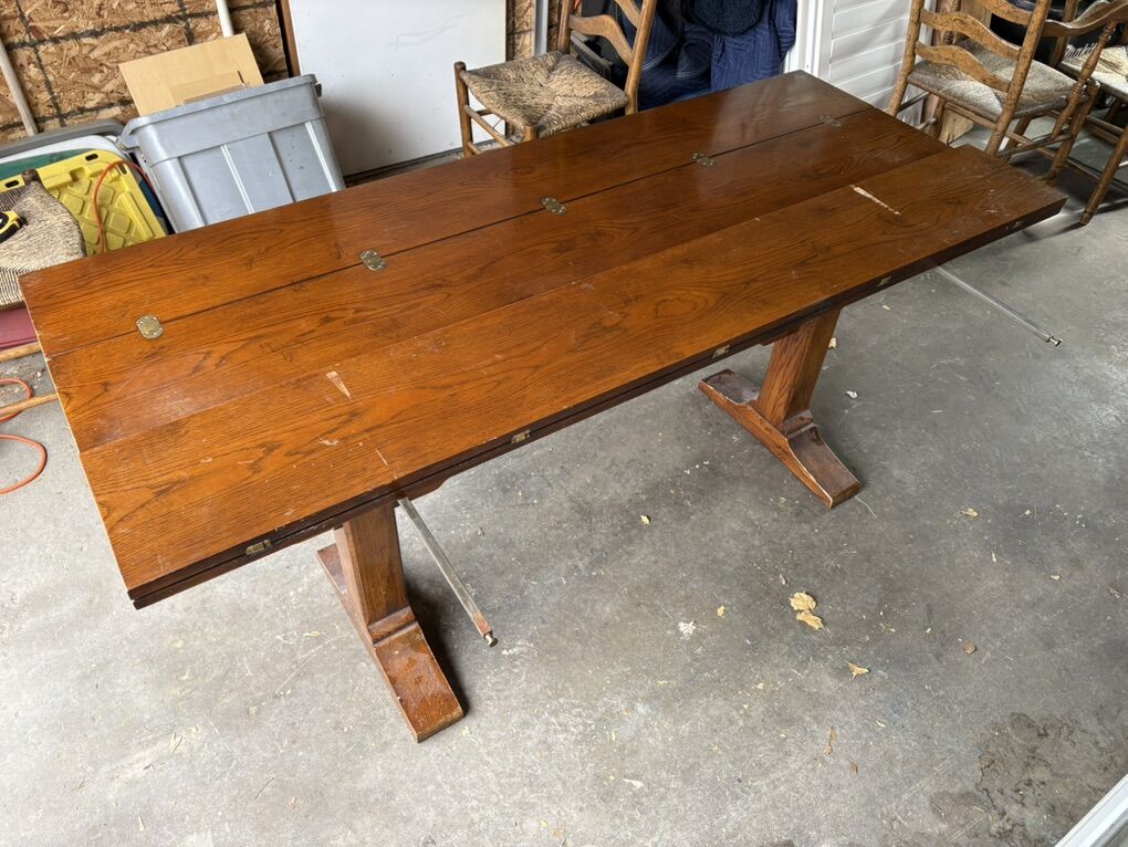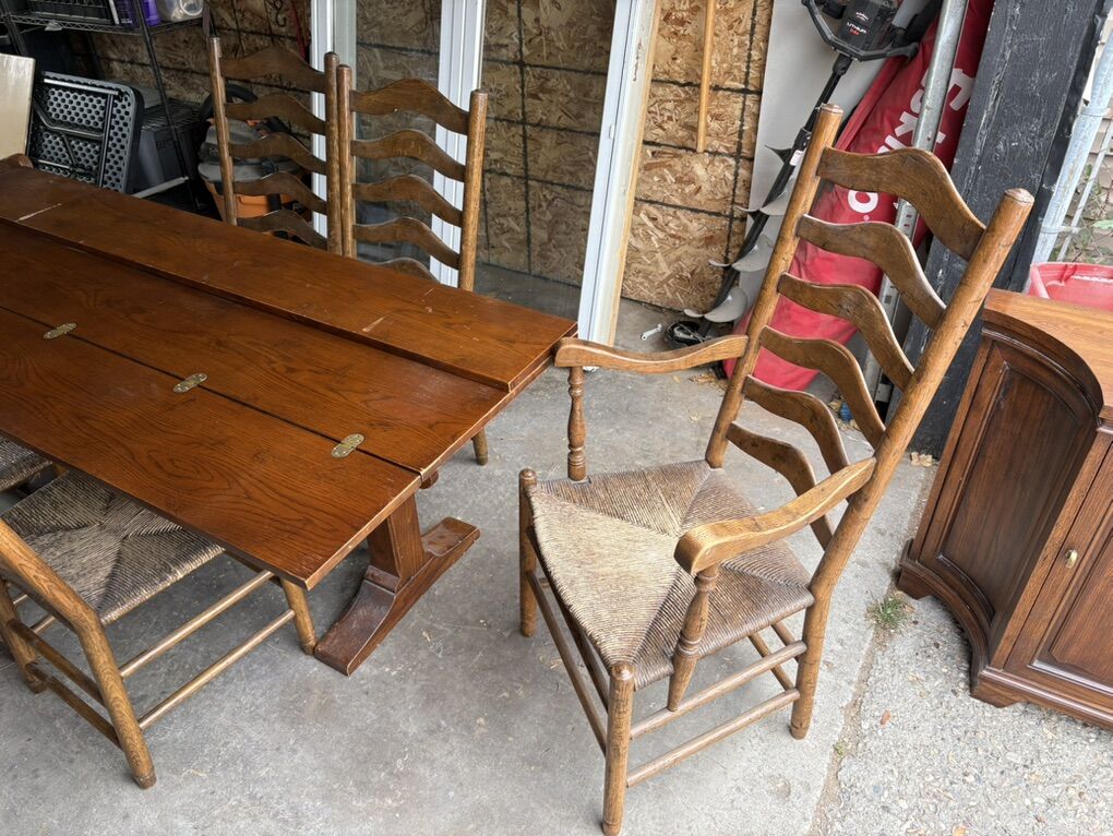 VenmoI have this beautiful dinning table and chairs for sale. I picked this up at a home reno and was thinking of keeping it for myself but doesn’t fit well in my house. The table has some worn spots, but overall is a great sturdy table.