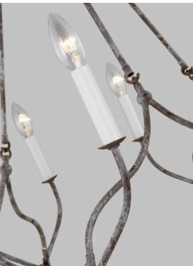 The eye-catching Richmond chandelier designed by Chapman & Myers for Generation Lighting. This exquisite piece features cream candle tubes and epitomizes the timeless French Country style. Since it is damp-rated, Richmond makes a great statement piece in indoor as well as covered outdoor spaces.