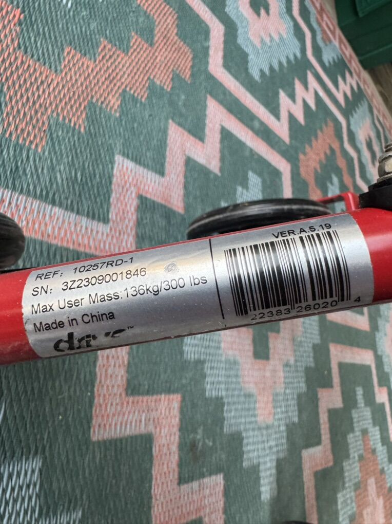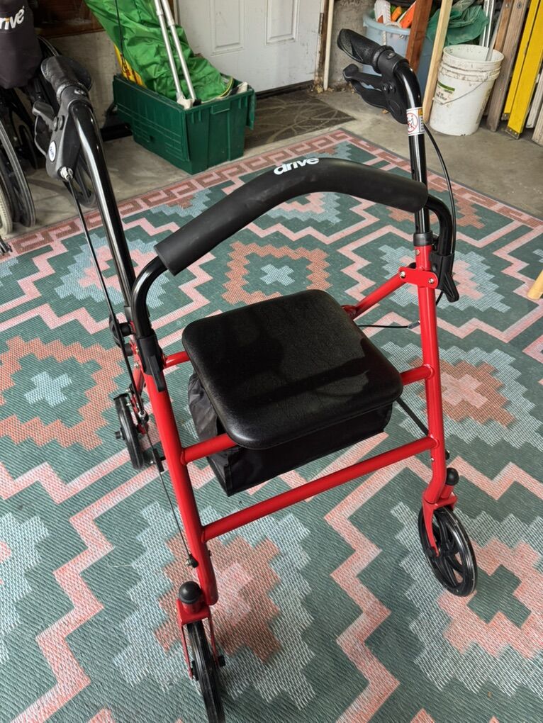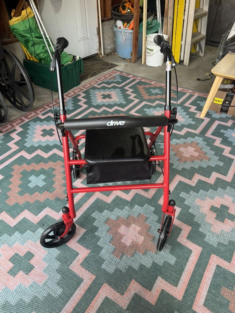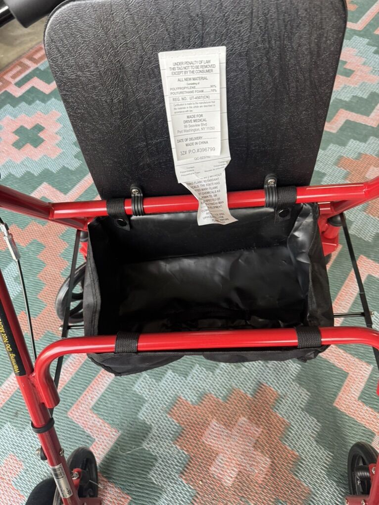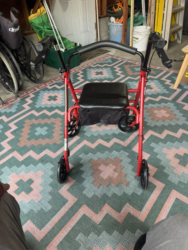 Nice red walker. Has storage under seat and back rest.
