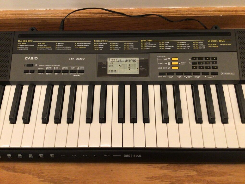 Everything works flawlessly. The Casio does not have a power supply, but the microphone has the original box and accessories. There is a USB cable for the interface as well.