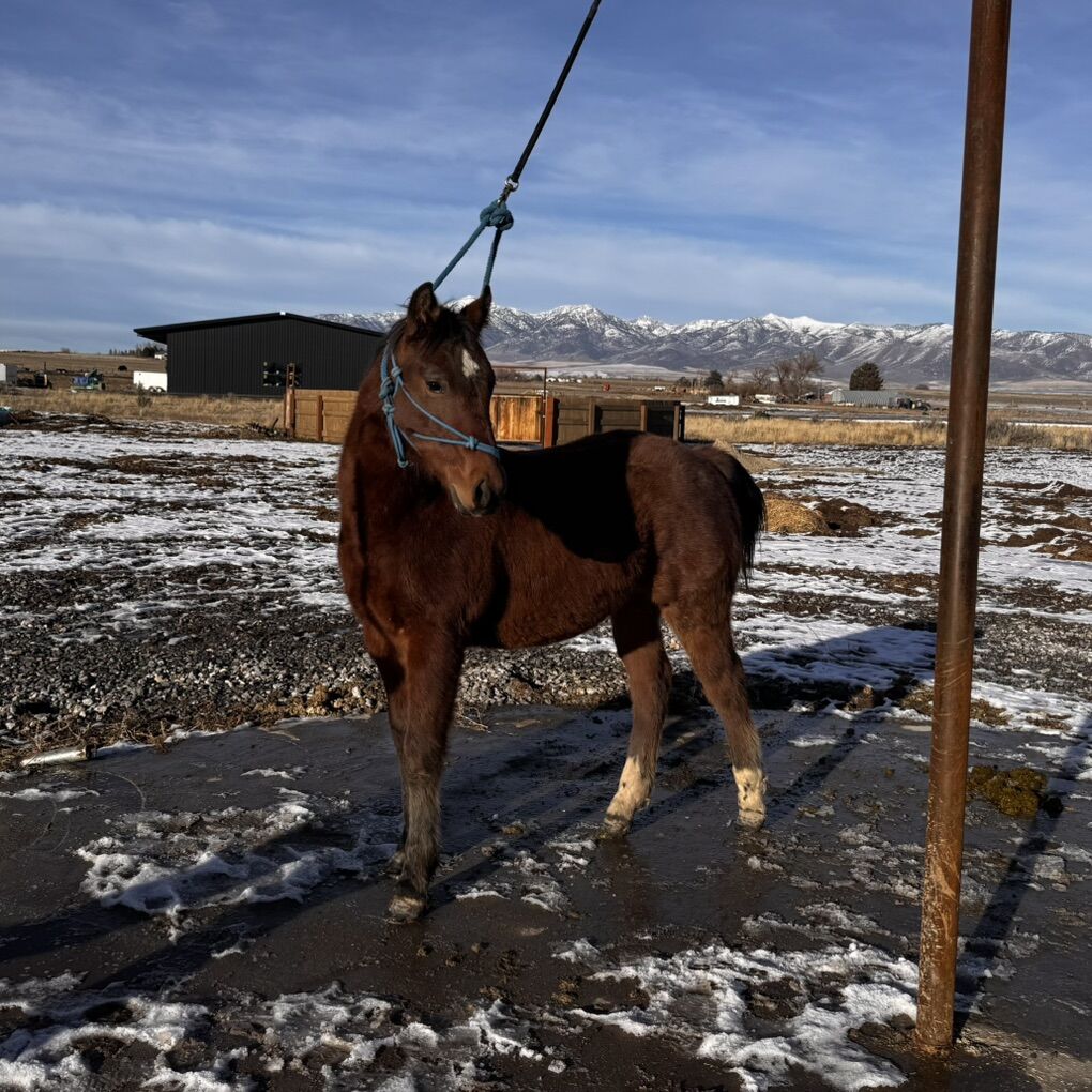 Standing to mature around 14.2 hands, he may be smaller in stature, but he possesses substantial bone and a robust frame that promise longevity and soundness. His gentle, patient, and puppy dog-like demeanor makes him not just a pleasure to handle but also an ideal companion for any aspiring equestrian.