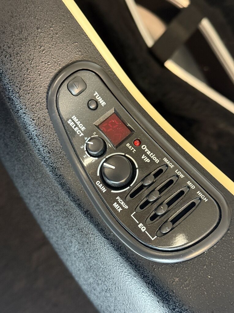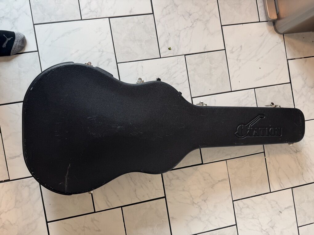 The Ovation Celebrity CC057 Acoustic Electric Guitar is one of a kind with an incredibly unique sound unique to only Ovation Guitars. This unique instrument is in overall good condition. The preamp doesn't seem to turn on and there is some fret bar damage, all present issues when I purchased it. It was well loved and was overall a great guitar. The hard case alone is a rare find with this guitar.