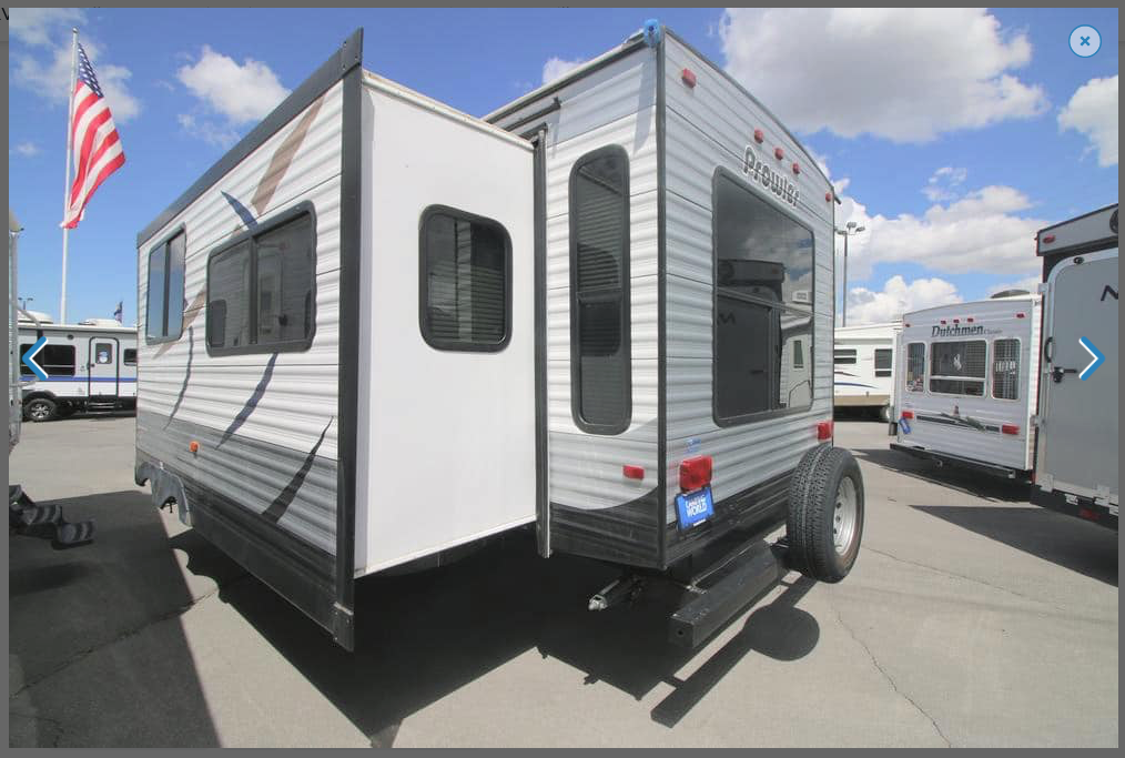 Heartland model 28P RLS, aluminum exterior, Electric-powered slide out, propane gas stove, TV, CD player, radio, antenna, electric/gas refrigerator, microwave oven, gas forced air furnace, electric air conditioner, electric/gas water heater, restroom with toilet, sink and shower, queen size bed, smoke alarms, dining table convertible to a guest bed, tires in excellent condition, two large propane tanks, 40 gal. fresh water tank, 6 gal. hot water tank, waste water tank 35 gal. capacity.