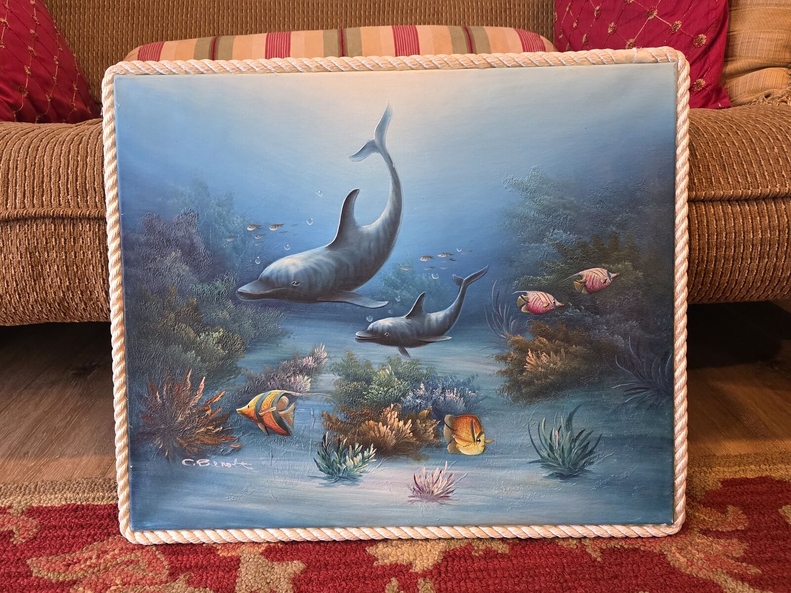 VenmoThese are two underwater oil paintings of marine life. The first is 36 inches high by 48 Inches wide. The second is 20 inches high by 24 inches wide. They have a simple white braided rope as an accent around the edges; however, this could easily be removed for framing. New, these paintings cost $300 for the larger painting and $100 for the smaller painting. I am selling them both for $75 or $50 for the large painting and $25 for the smaller painting.