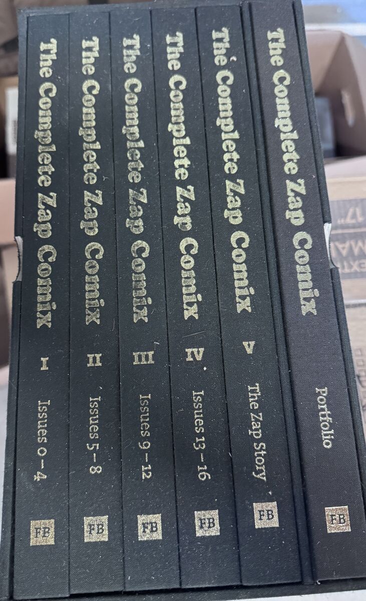 There scarcely was an underground comics world before Robert Crumb’s classic solo first issue of_Zap_. By Zap #2, he had begun assembling a Seven Samurai of the best, the fiercest, and the most stylistically diversified cartoonists to come out of the countercultural kiln. All of them were extremists of one sort or another, from biker-gang member Rodriguez to Christian surfer Griffin, but somehow they produced a decades-long collaboration: a mind-blowing anthology of abstract hallucination, throat-slashing social satire, and shocking sexual excess, that made possible the ongoing wave of alternative cartoonists like Daniel Clowes, Chris Ware, and Charles Burns. The Complete Zap Comix collects every issue of Zap — every cover and every story, and even the Zam mini comic jam among the Zap artists — in a five-volume, slipcased hardcover set. Plus, an introduction by founder R. Crumb and an oral history of Zap by Patrick Rosenkranz. _Zap_is the most historically and aesthetically important comics series ever published.