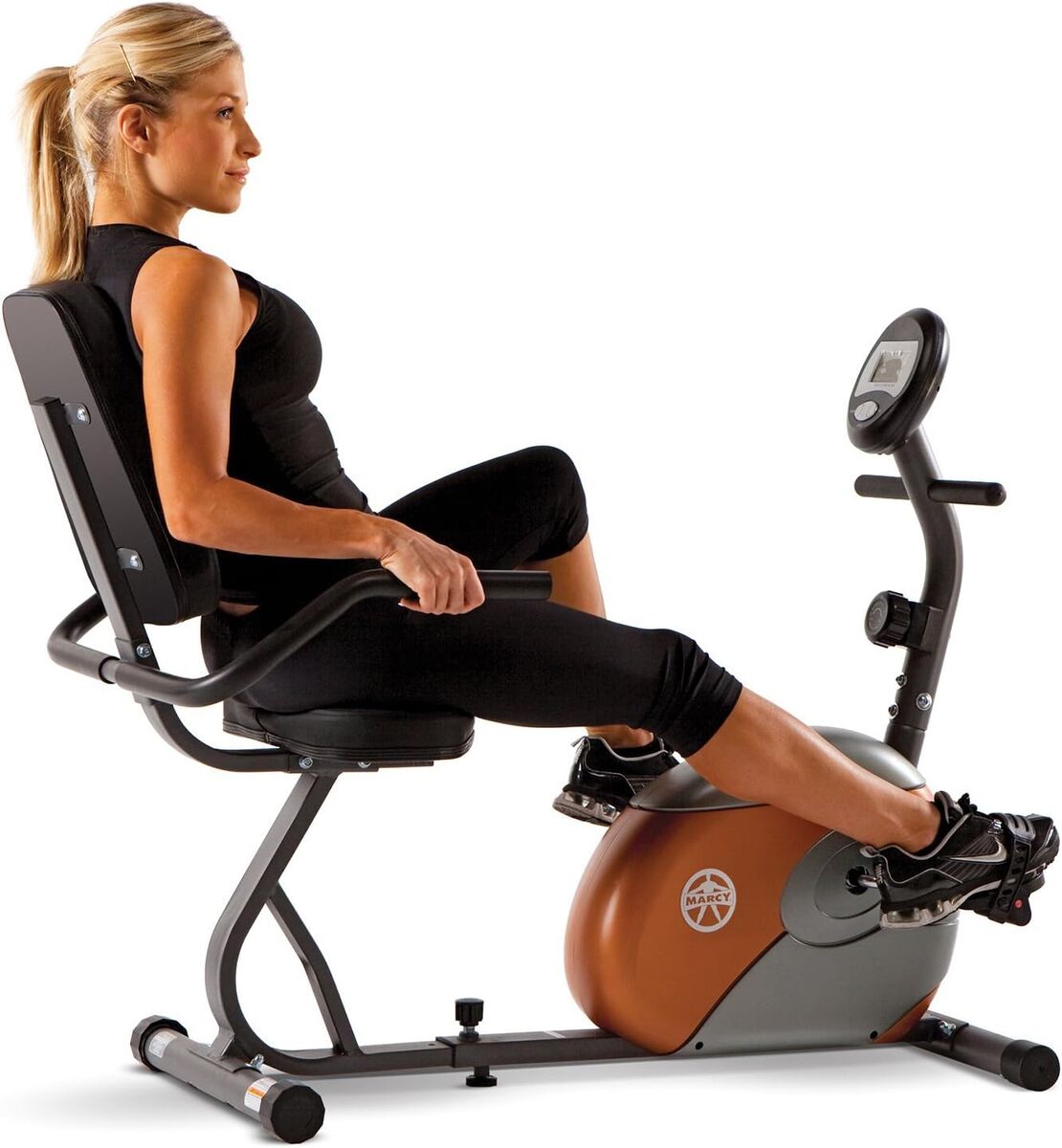 The Marcy ME 709 Recumbent MAG Bike has smooth magnetic resistance with eight preset levels of resistance. For ease of operation an easy to read computer screen displays speed, distance, time and calories burned.