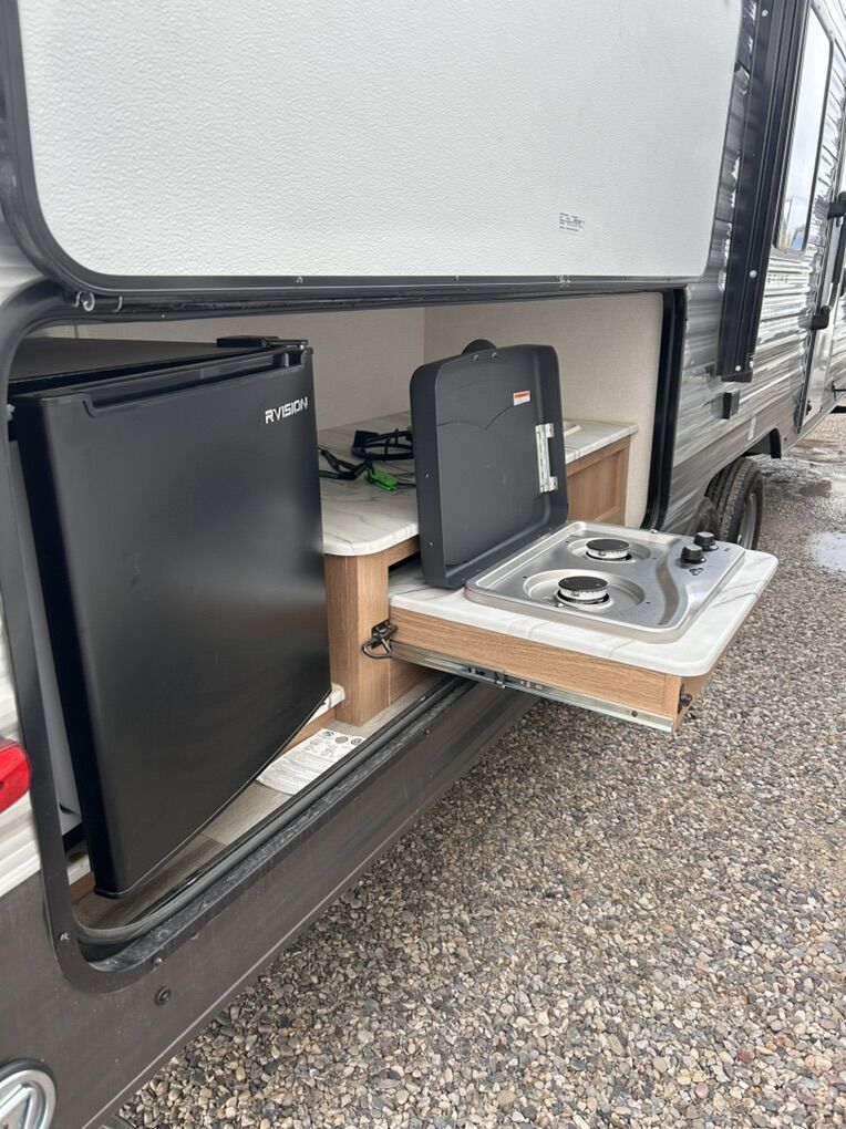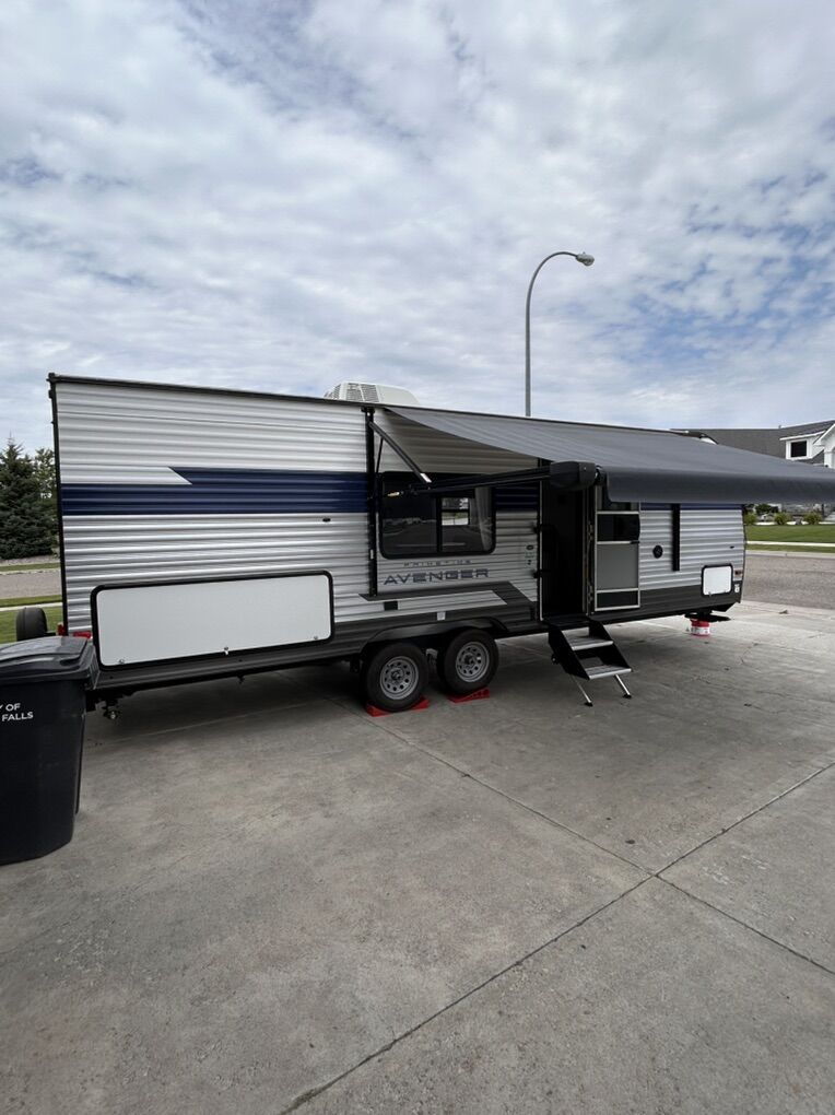 2022 Primetime Avenger 26bk. This camp trailer has been used a total of 6 times. This has double bunks beds with improved mattress pads. Outdoor kitchen and fridge. A/C works great on hot summer days. Awning is automatic and lighted. Outdoor speakers and outside shower for those hot dusty days.