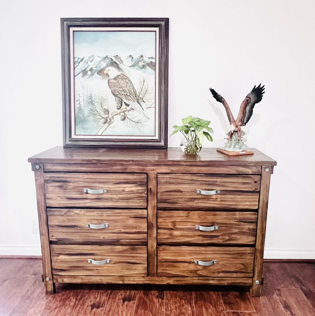 VenmoMatching Solid Wood Bedroom Set - Rustic Industrial Style - $400/OBO Beautiful matching dresser and chest set in excellent condition! Solid wood construction with rich, warm tones and natural grain patterns.