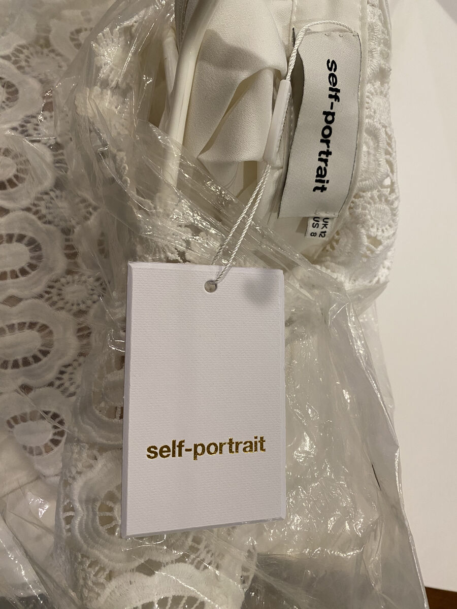 Designer: Self Portrait . Mock neck, white, long sleeve dress. Size US 8- UK 12.