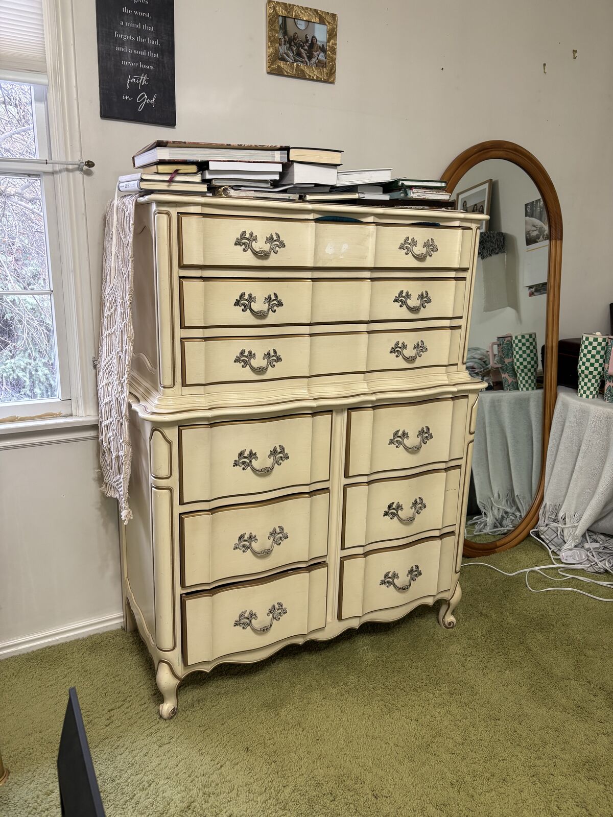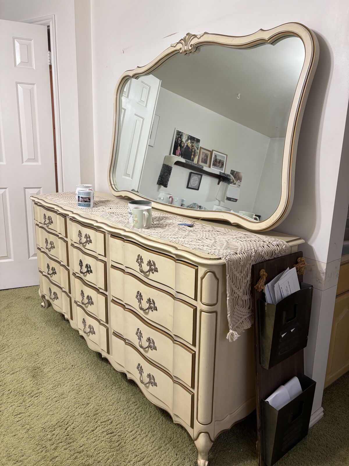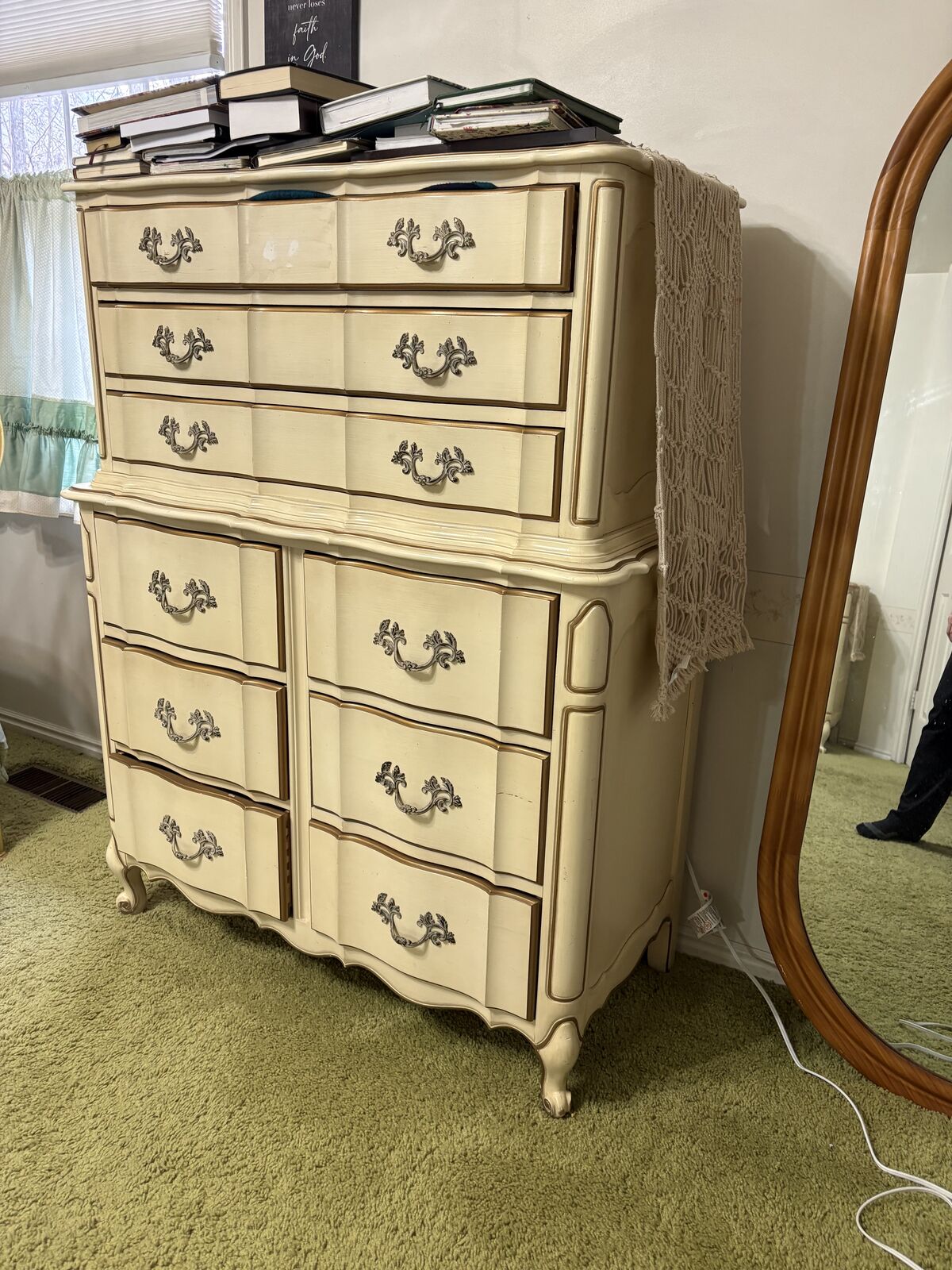VenmoFrench Provincial bedset - king headboard not pictured, , 6' long dresser with mirror, highboy dresser, bed stand $150. Will sell seperately.