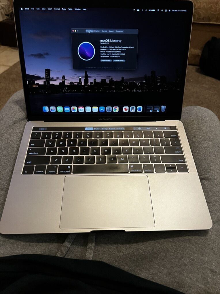 MacBook Pro with Touchbar 2016 13-Inch, Four Thunderbolt 3 Ports 3.3GHz Dual-Core Intel Core i7 16GB of memory 256GB SSD