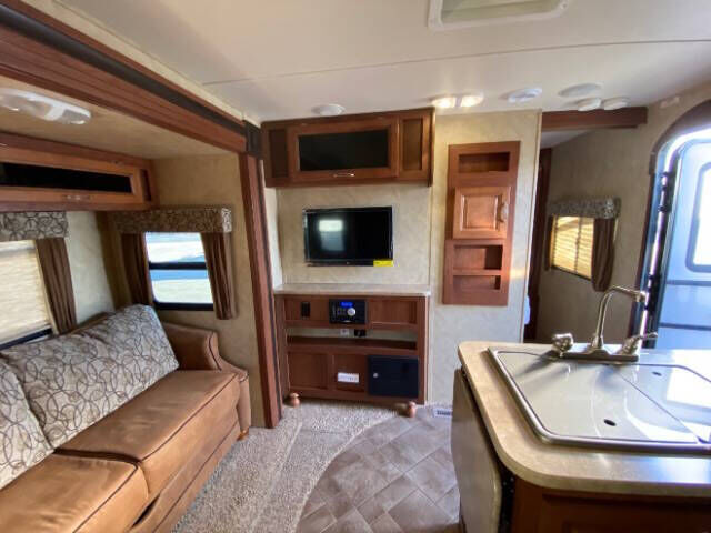 The Wildcat Maxx T29BHS boasts a spacious layout, perfect for families or groups of adventurers. With its intelligent use of space, it offers ample room to sleep, eat, and play, without ever feeling cramped. The rear bunkhouse is a delightful feature for families, providing a separate den for kids or guests to unwind. Meanwhile, the living area is a cozy retreat with its plush seating and entertainment-ready setup, making it ideal for movie nights or simply relaxing after a day of exploration. The full kitchen comes equipped with everything you need to prepare home-cooked meals on the road, keeping everyone's favorite recipes at your fingertips.