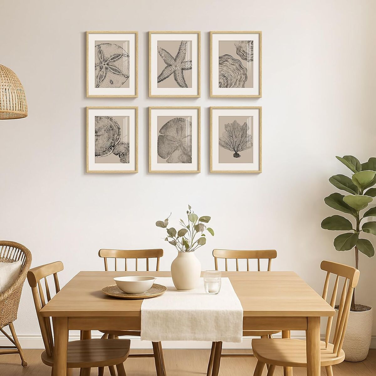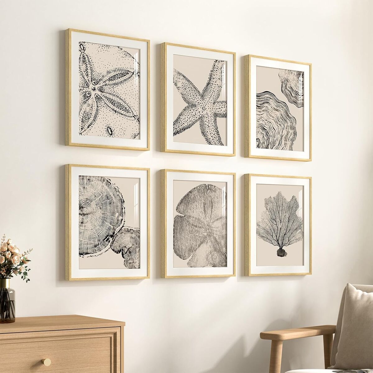 ApplePayFramed Coastal Wall Art for Living Room, 6 Piece Neutral Black Beige Modern Abstract Prints Artwork, Ocean Coral and Beach Tree Ring Pictures for Bedroom Dining Room Bathroom Wall Decor 11x14 In