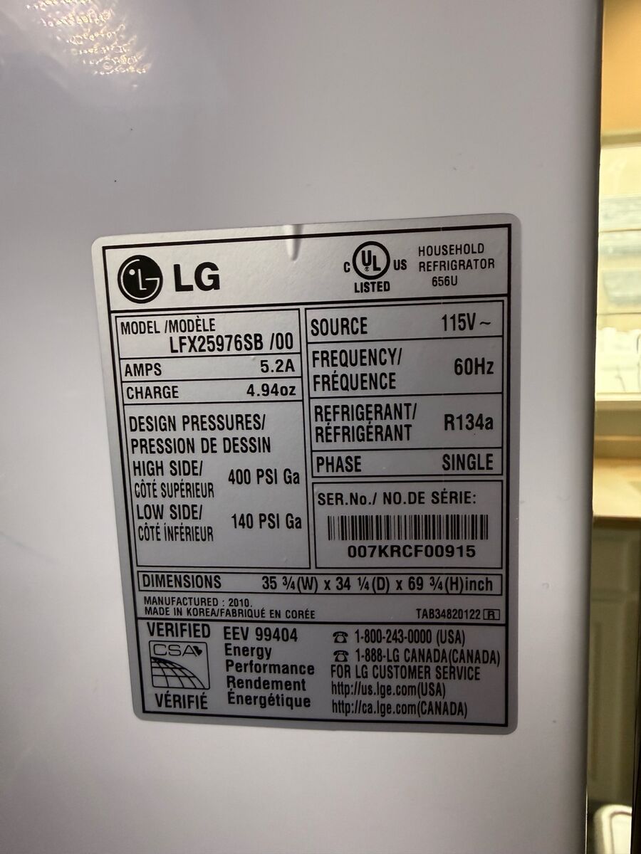 VenmoLG French door refrigerator with bottom freezer drawer. Model LFX25976SB.