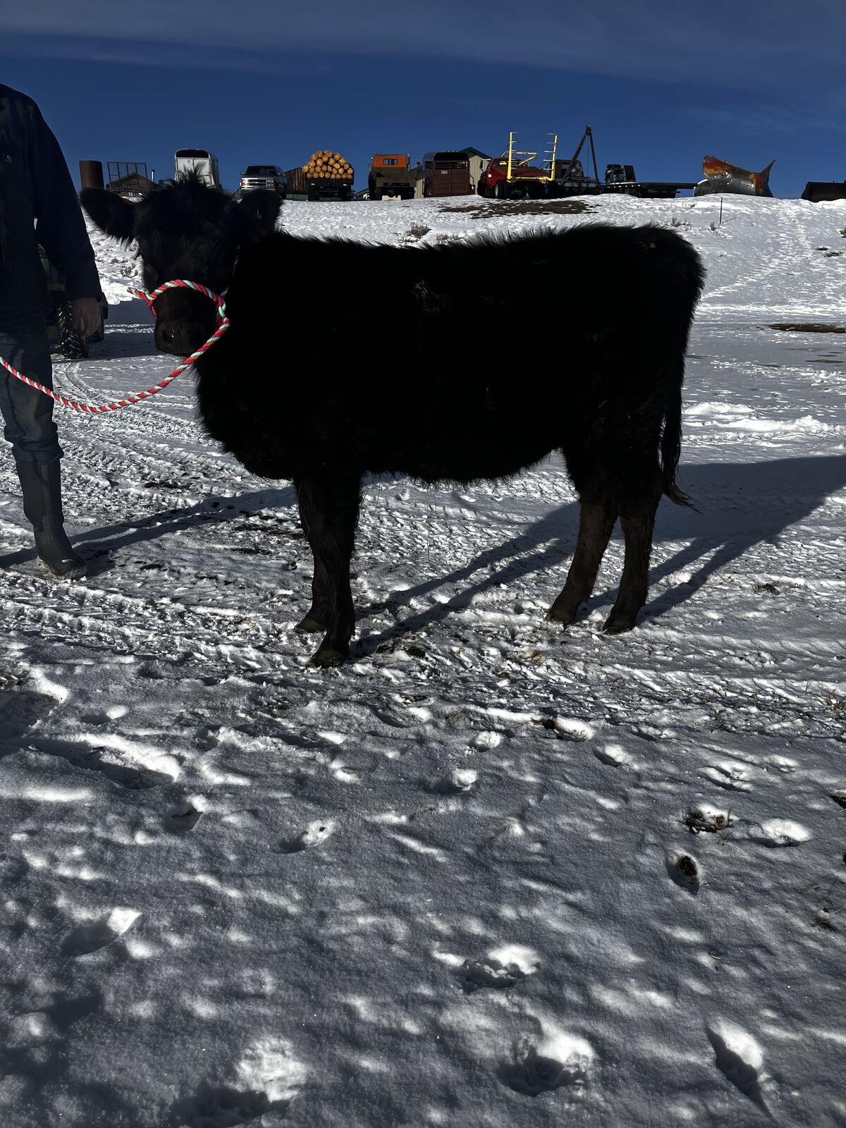 Ranch is BQA certified, maternal line provides for both calf & hand milking. Heifer is halter broke & friendly. Would make excellent family cow, as a 1/2 brown swiss her offspring won't fit into our Angus Verified program requirements.