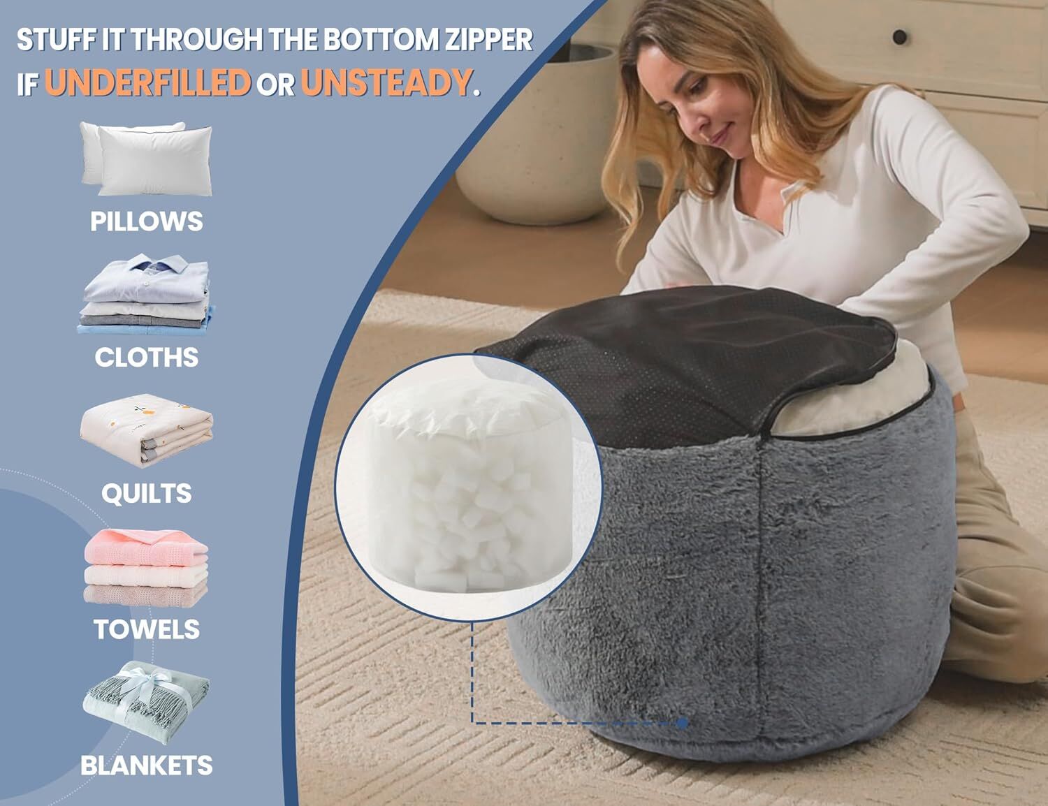 About this item - Round Ottoman:The surface of the foot rest pouf is made from soft outer layer, which is extremely soft to the touch, providing a warm feeling that complements any décor. The poofy ottoman is filled with enough foam for a full and fluffy shape, perfect for use as an pouf ottoman foot rest, bean bag ottoman or couch foot rest. Each footstool and ottoman small measures 26x26x18 inches. These foot ottomans for living room and couch enhancing functionality and aesthetics in any setting.