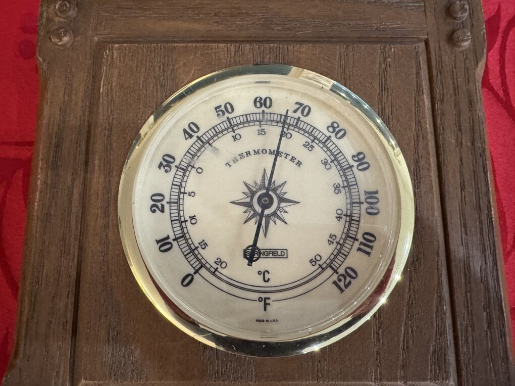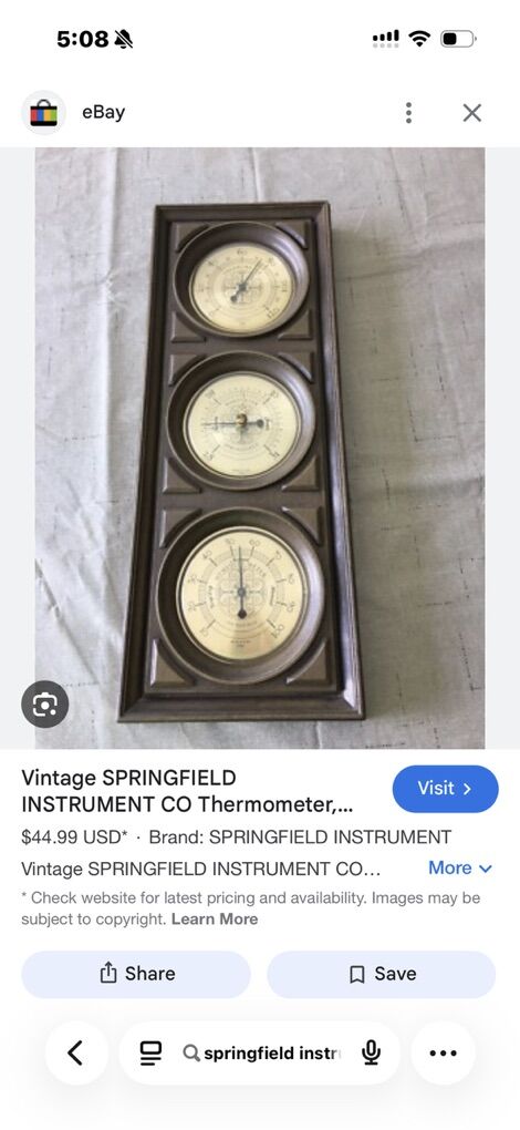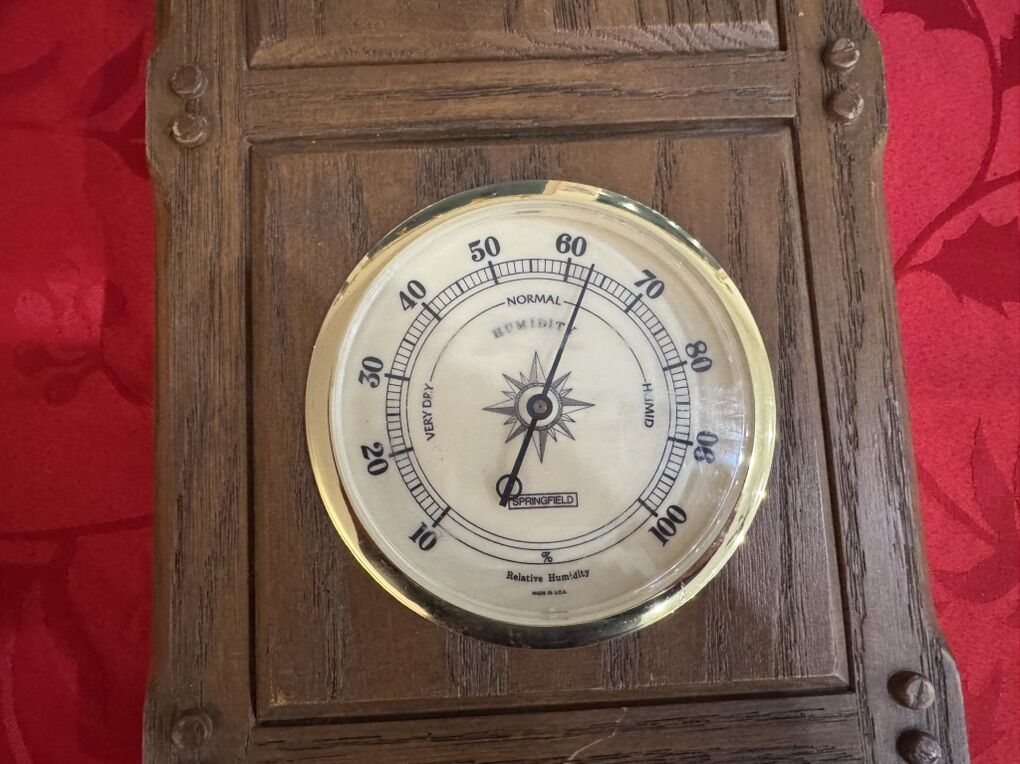 Vintage older Springfield instrument thermometer, humidity, barometer. Would look great in a man cave or steampunk theme room. Works. First $10 gets it. Cash only text only 801-979-0829