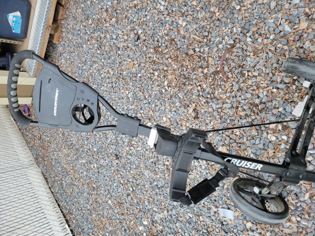 TourTrek Cruiser 3-Wheel golf Push Cart, can adjust recline incline angle too. Perfect for any terrain.