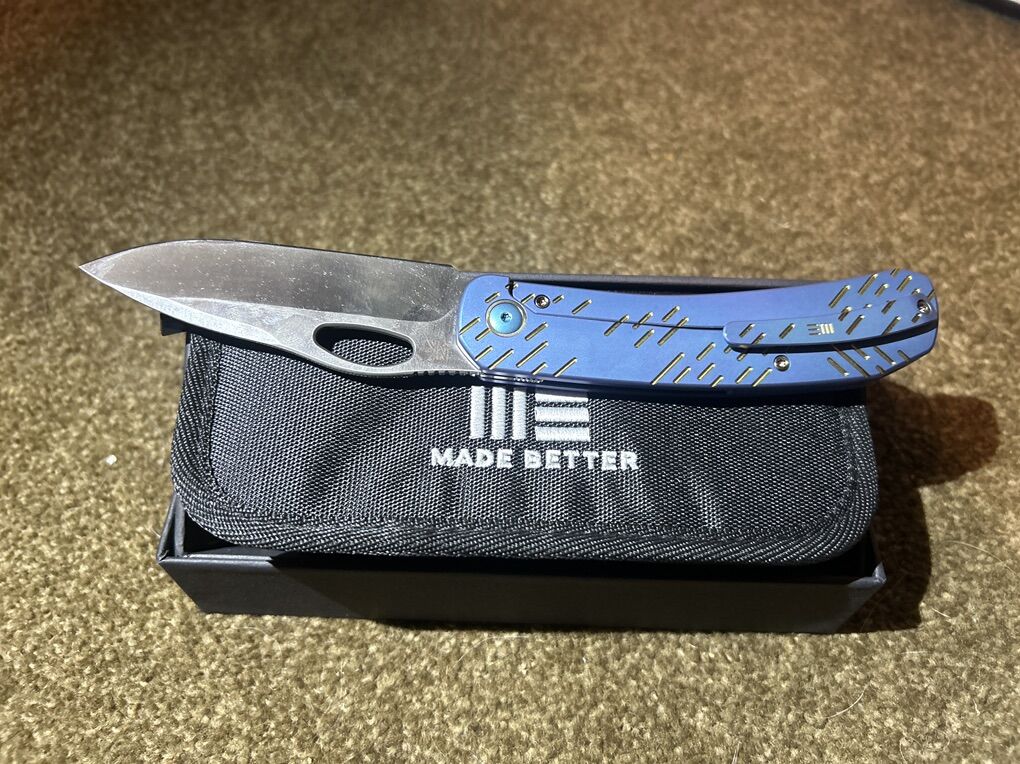 ApplePayOut of box one time (pictures) Blue/gold colorway 20CV blade steel Full titanium construction Frame lock (with lock bar insert) $320 Or best offer Taking down 05/1/2026