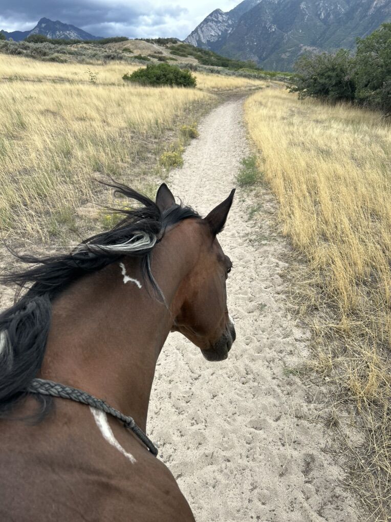 Tacoma is super safe and sane. Will never kick, bolt, buck or rear. He would be best for an intermediate rider because he has a forward, willing motor. A beginner with a trainer/coach could ride him with proper instruction on how to use your legs/seat cues. He moves off of leg pressure, neck reins, side passes, and spins. He won a check in poles last march in Ogden.
