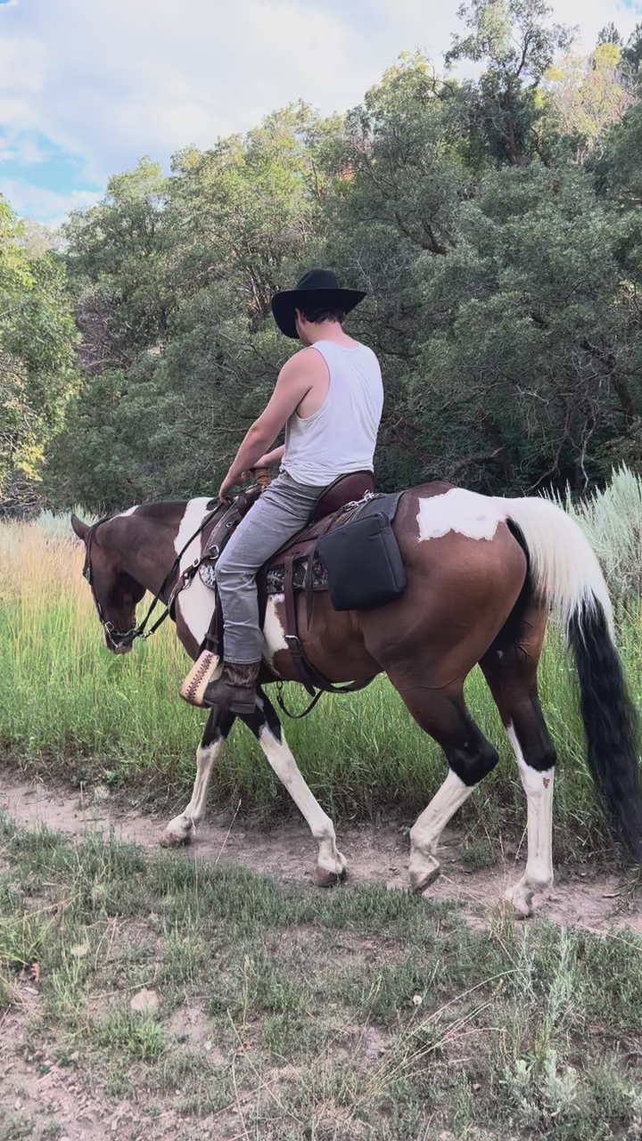 He is the perfect “weekend warrior” trail/playday horse, he can sit for a month and be the same horse every time.