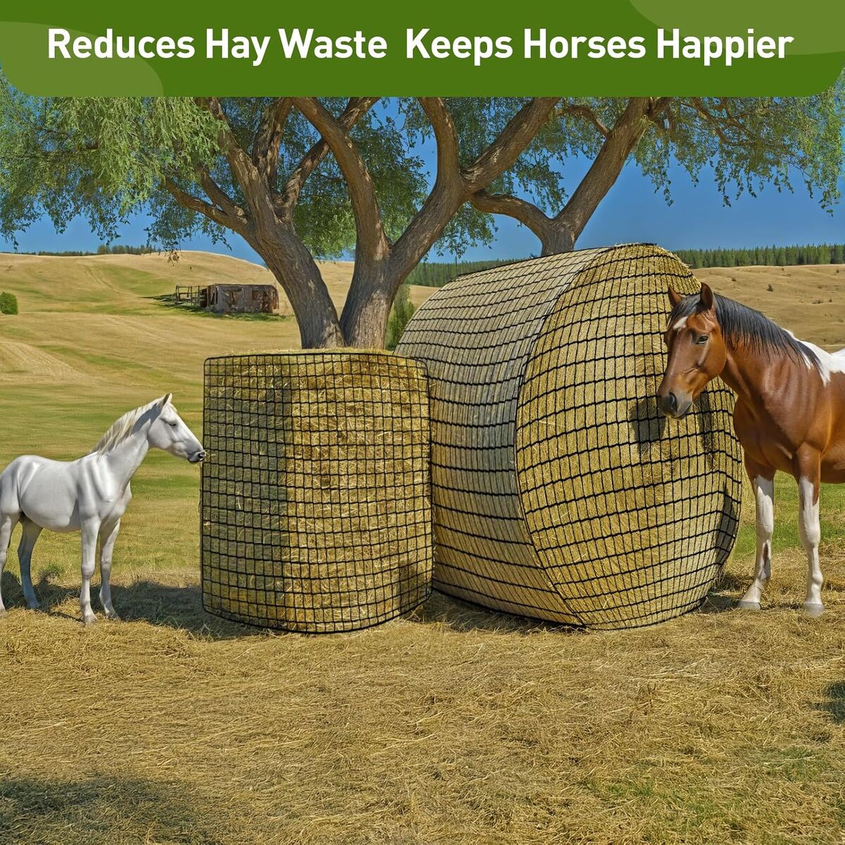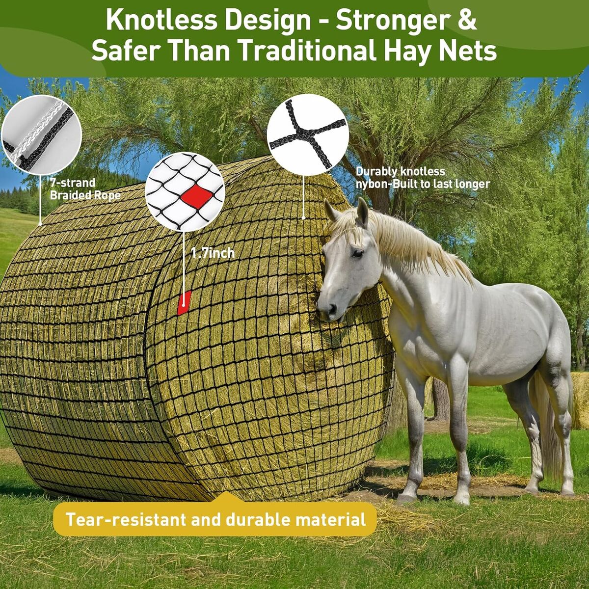ApplePayRound Bale Hay Net for Horses, Durable Knotless Nylon Slow Feeder, 6x6 ft, Reduces Hay Waste, Ideal for Outdoor Use, Promotes Healthy Digestion