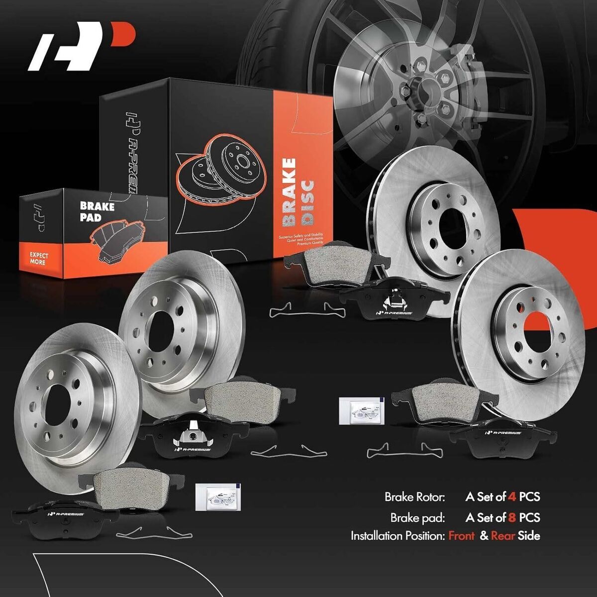 A-Premium Front & Rear Brake Rotors Kit