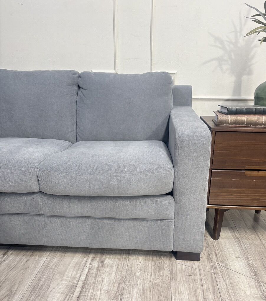 100% Polyester Fabric • 4.75 Serene Foam Queen Size Mattress • Linkrest Sleeper Mechanism • Seat Cushions Fold Under the Sleeper Mechanism for Easy Storing • Espresso Brown Solid Wood Legs