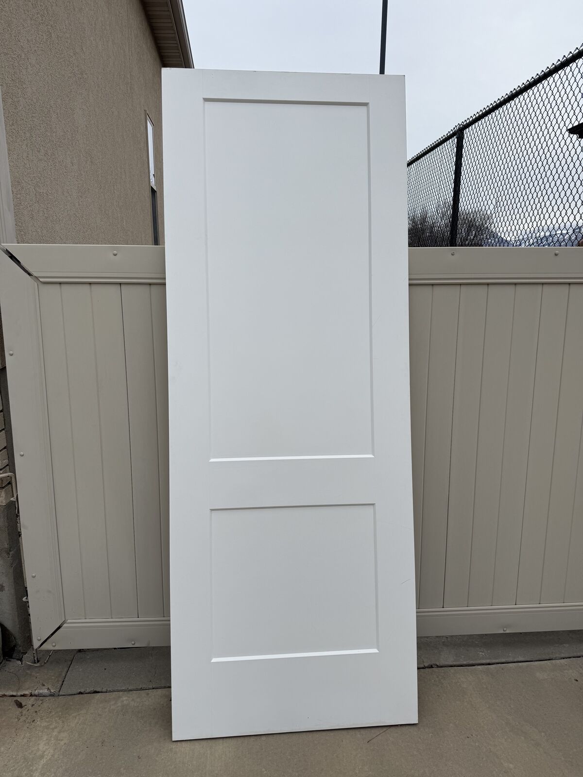 Photo #3 3'x8' pocket door slab. 2 panel, solid core, painted white, never installed.