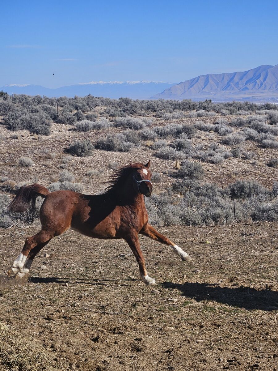 5 year old Arabian gelding he will take you any place you want to go great hores I dont ride much anymore and he loves to go I will hate to see him go but im done with horses after he go's I will be saleing my 3 horse slant load but not till he has sold im asking 5000 he will go through water and cary you all over the mountains there is no stop in him Thanks for looking .