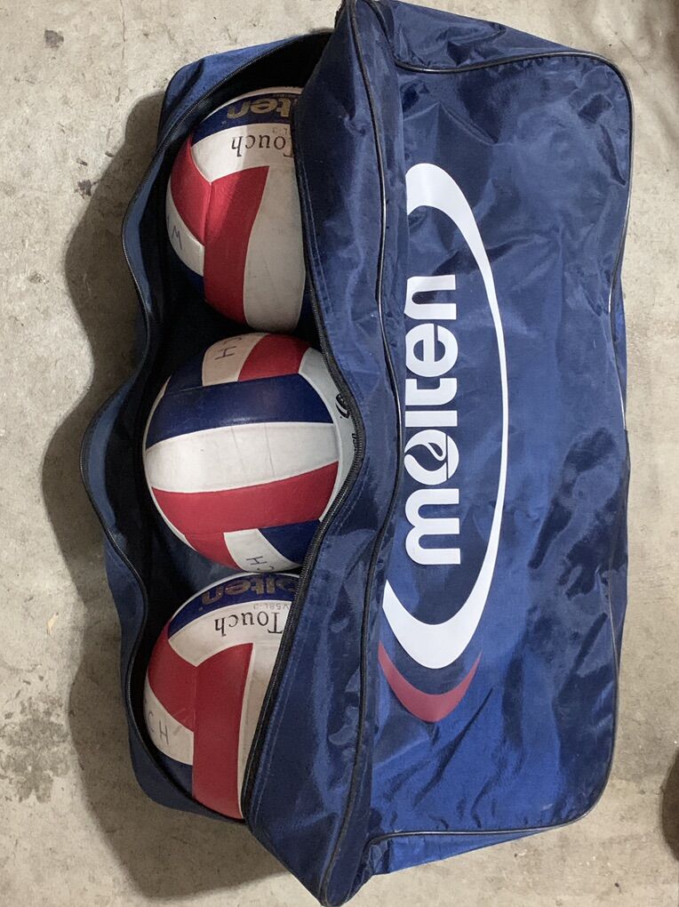 Venmo6 Molten leather volleyballs with bag. Used several years ago in a young mens league. All balls are in good condition.
