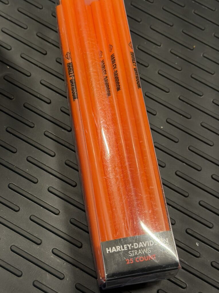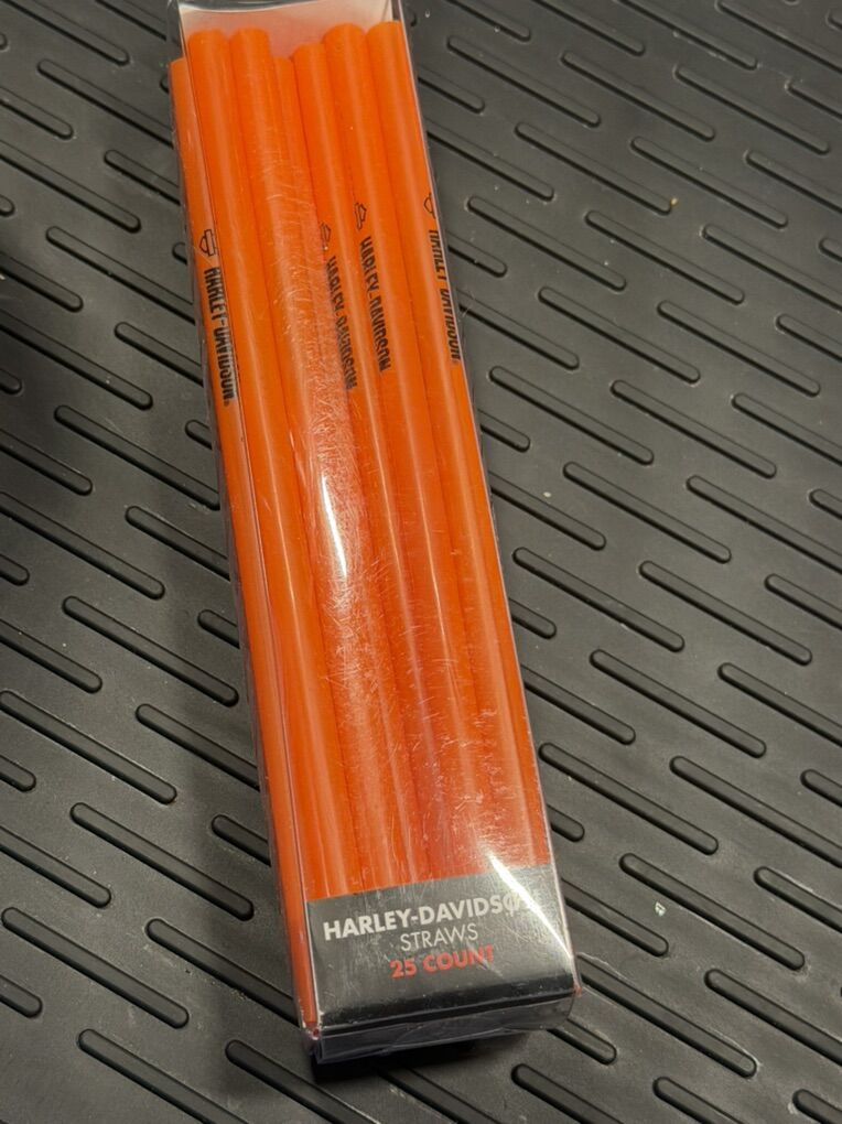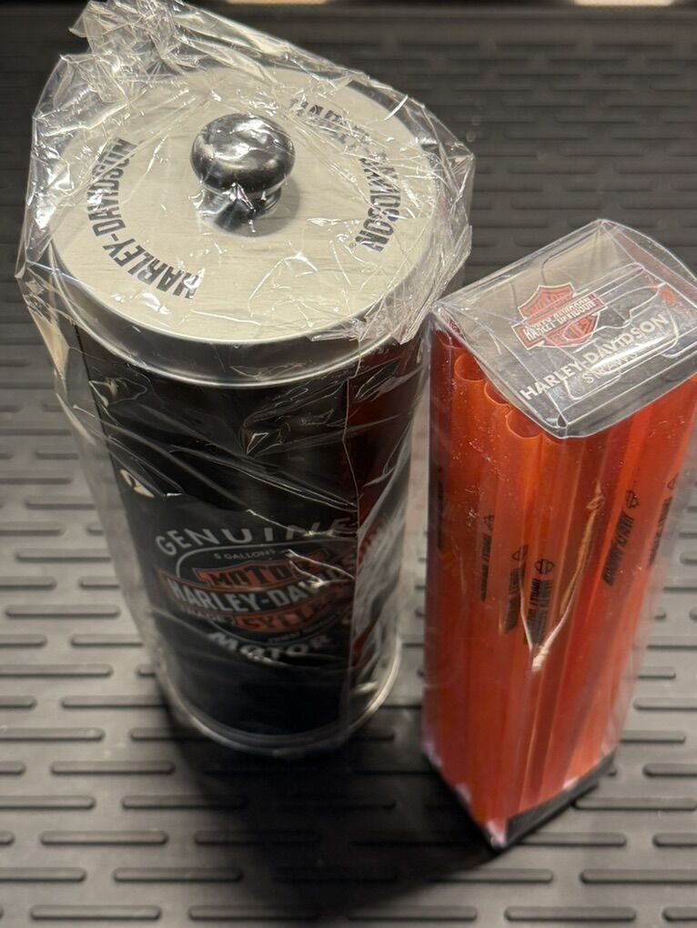 Harley Davidson Oil Can Straw Holder & Straws, plus another pack of straws. $20.00