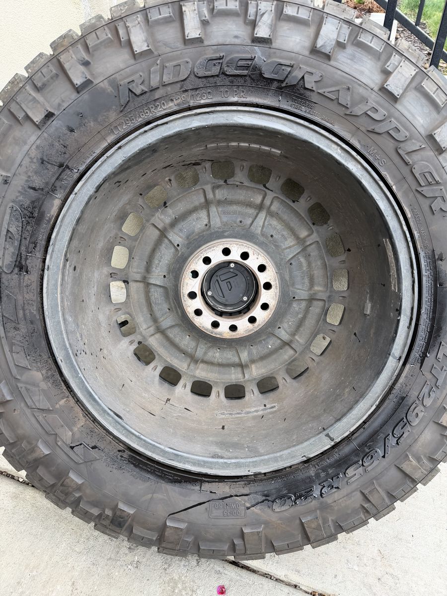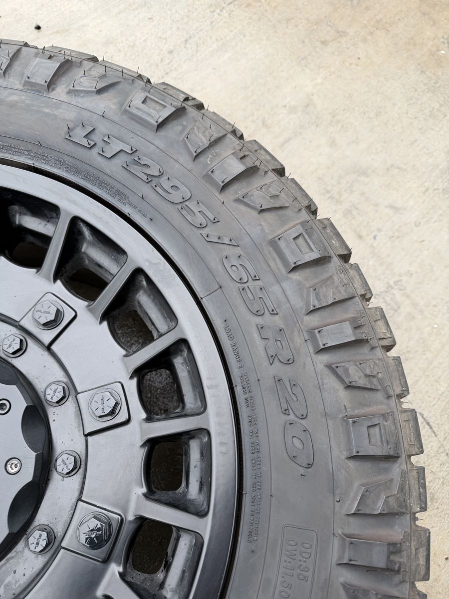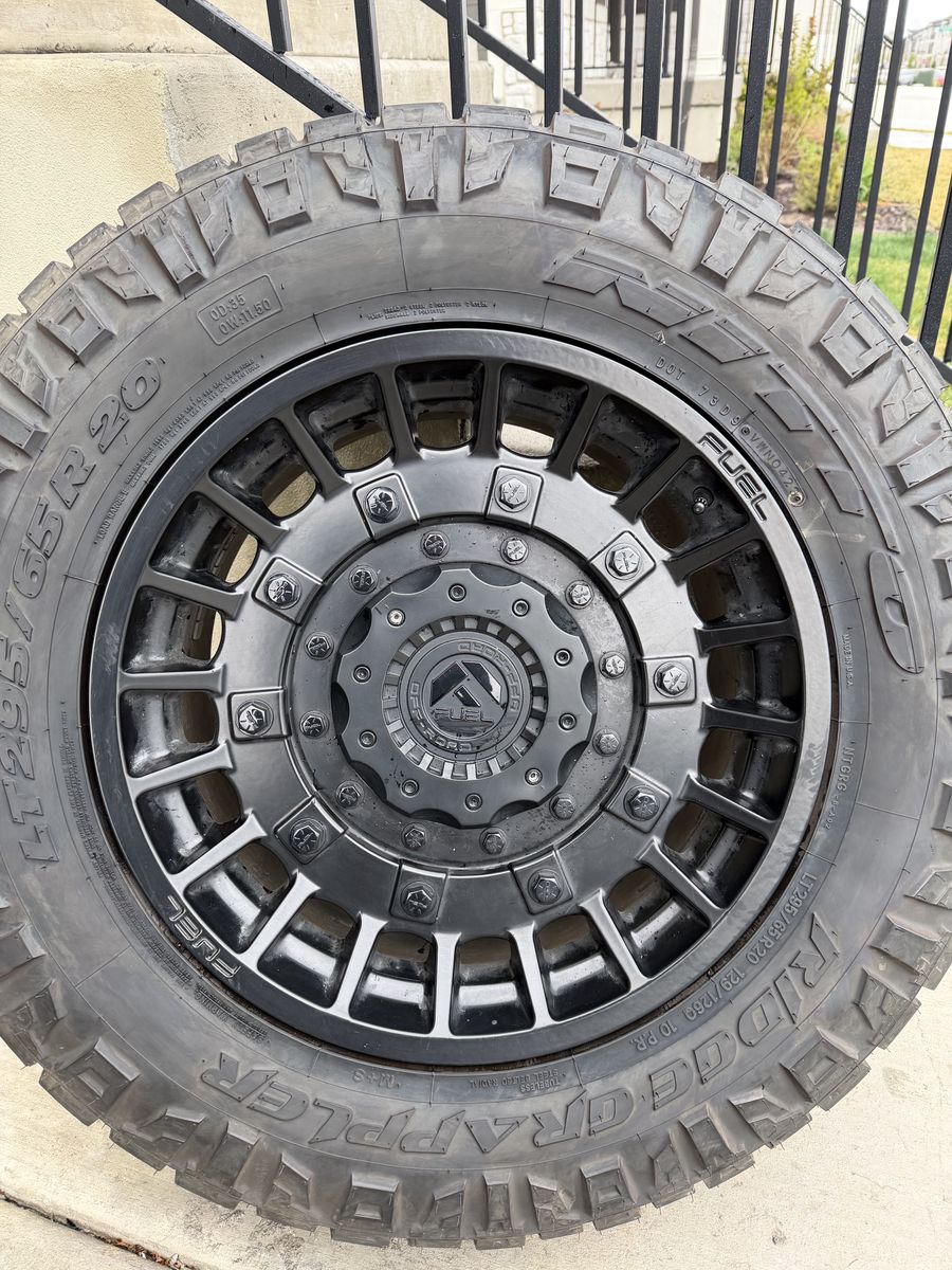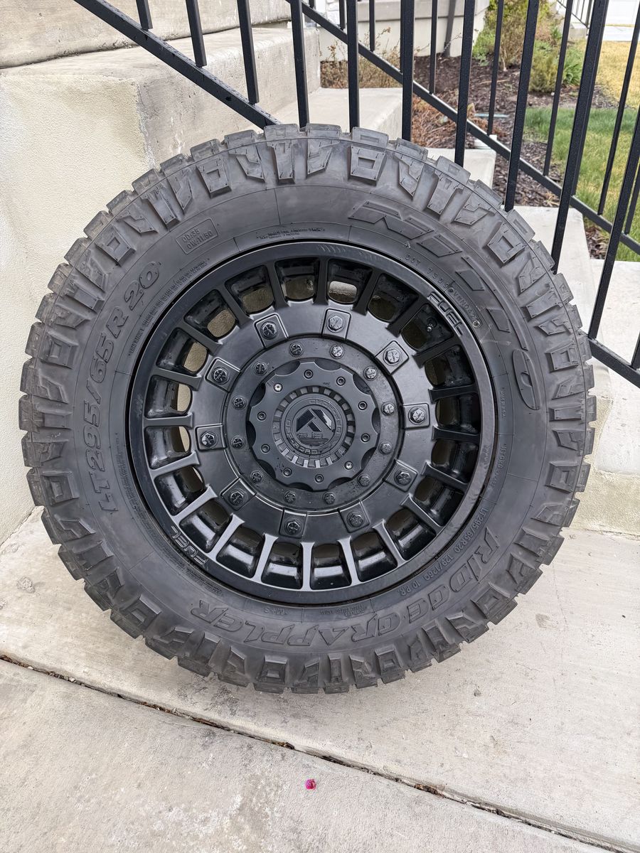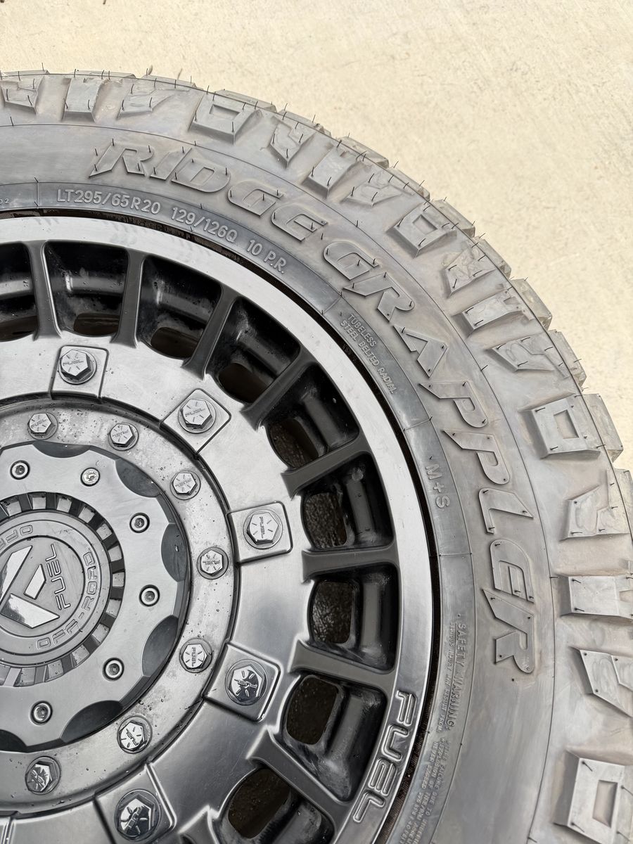 ApplePaySet of 4-Ford F150 Chevy GMC 1500 Rims and Tires 295/65R20 Nitto Ridge Grappler Load E in great condition only 5000 miles on them,asking $2700 obo Tires are like new almost full tread Rims are are in excellent condition no scratches or curb rash Rims are Fuel Militias 20-9” Offset +1