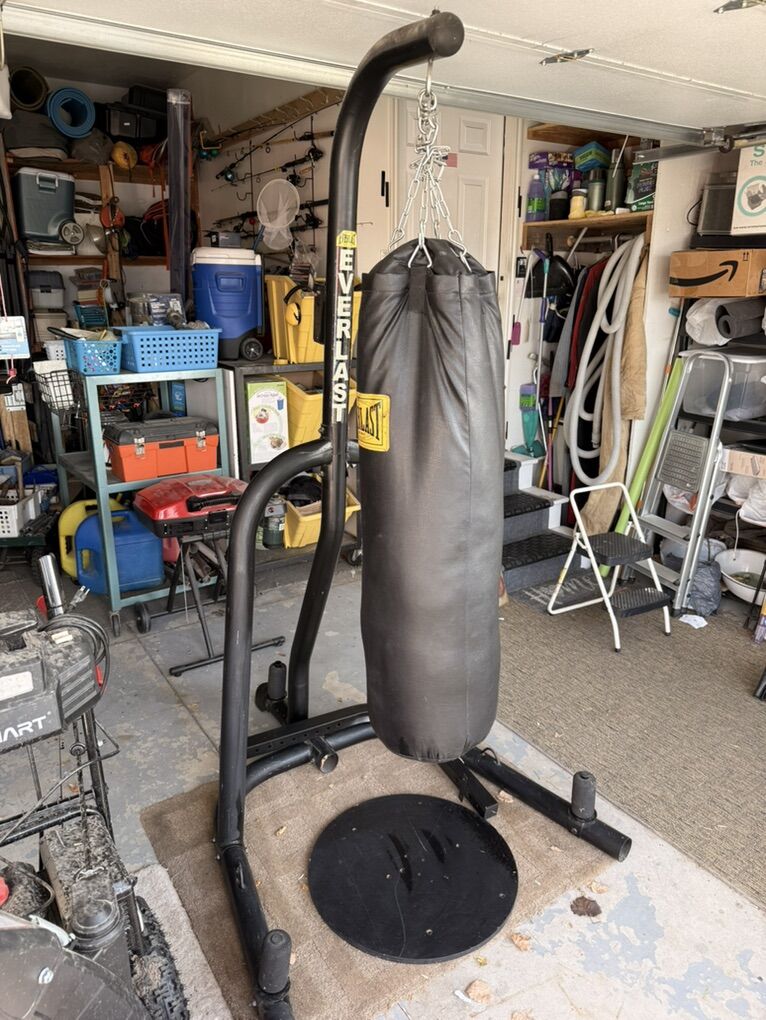 Lightly weathered, but overall great condition. Very sturdy and strong; not used much. Comes with sparring gloves.
