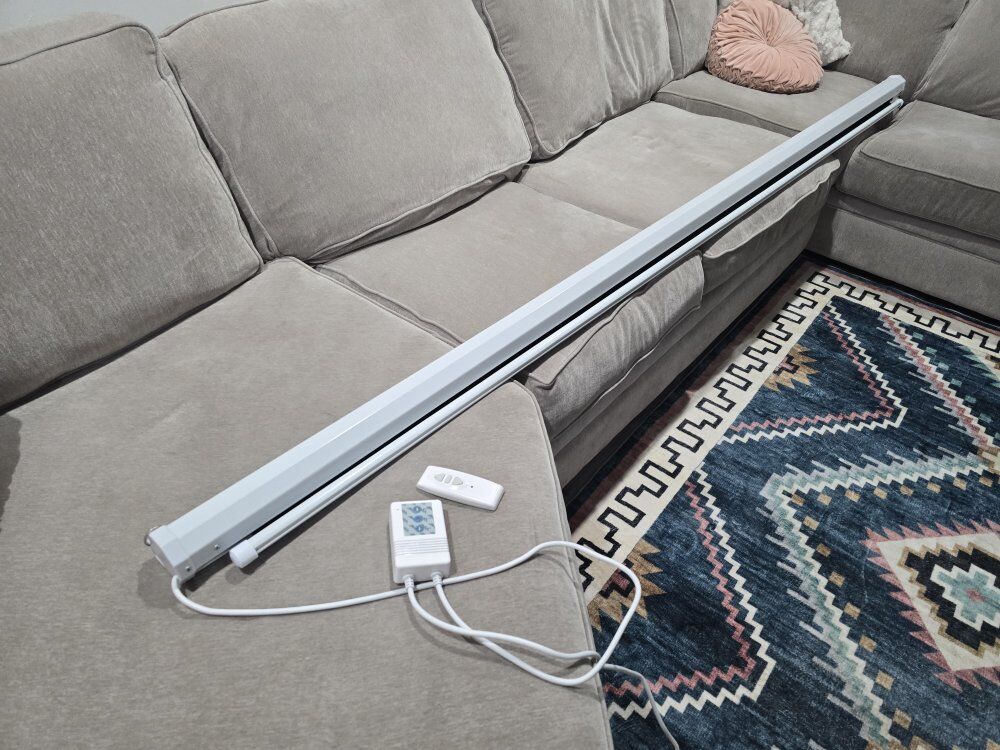 doesn't realize after already throwing away the box that it does a 120 inch 4:3 ratio when we really preferred 16:9 for our setup. technically it could be used with a 16:9 projector. because of the difficulty and trying to return it now we are selling at a discounted price. can set it up to extend it out for inspection before you take it home .